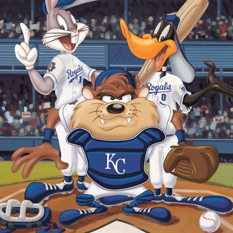 "At the Plate (Royals)" is a limited edition giclee on paper from Warner Bros. featuring iconic Looney Tunes characters in Kansas City Royals MLB uniforms. It comes numbered, with hologram seal, and a Certificate of Authenticity! Measures approx. 16 x 20" (with border), 12" x 16" (image).