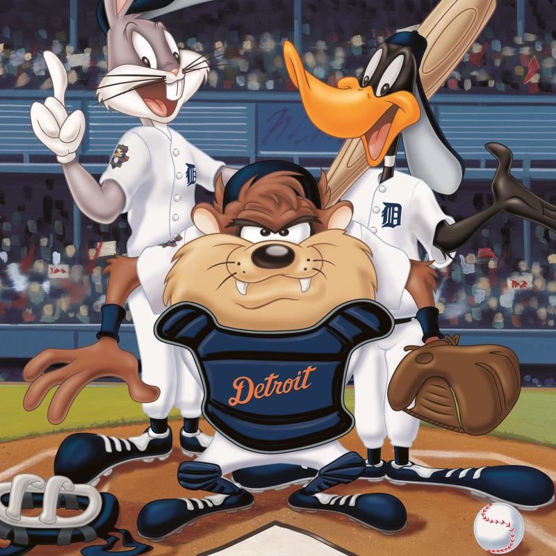 "At the Plate (Tigers)" is a limited edition giclee on paper from Warner Bros. featuring iconic Looney Tunes characters in Detroit Tigers MLB uniforms. It comes numbered, with hologram seal, and a Certificate of Authenticity! Measures approx. 16 x 20" (with border), 12" x 16" (image).