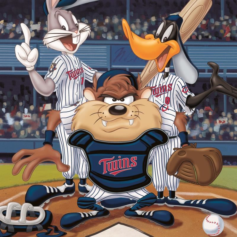 "At the Plate (Twins)" is a limited edition giclee on paper from Warner Bros. featuring iconic Looney Tunes characters in Minnesota Twins MLB uniforms. It comes numbered, with hologram seal, and a Certificate of Authenticity! Measures approx. 16 x 20" (with border), 12" x 16" (image).