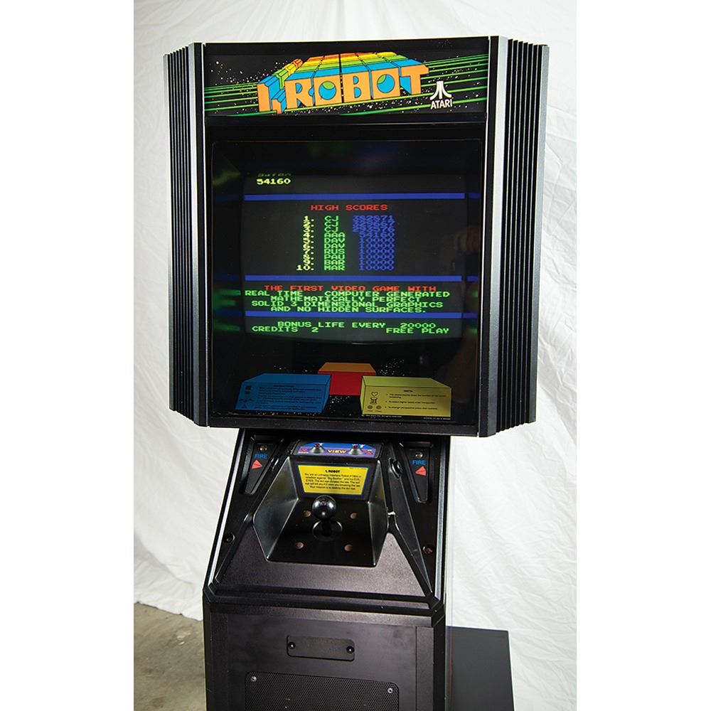 I, Robot represents the first raster monitor, color video game to use only correctly rendered 3-D graphics for gameplay. As such, it can be considered the original ‘3-D shooter’-style game, which has subsequently dominated video and arcade game development. So advanced was the development of I, Robot in 1982-1984, that it was still considered a difficult benchmark for game emulator systems a full 15 years after its official release by Atari.