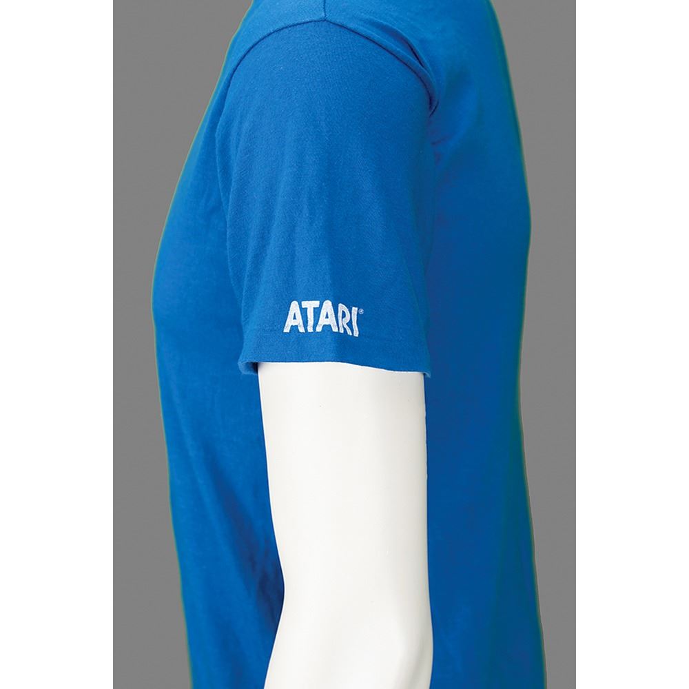 Rare vintage Atari, Inc. t-shirt from circa 1984, deriving from the personal collection of David Sherman, lead hardware designer of the innovative Atari games Missile Command and I, Robot. The bright blue Hanes t-shirt, size medium (38-40), features an awesome front cover design for the arcade shooter game I, Robot, showing the servant robot, ‘Unhappy Interface Robot #1984,’ advancing towards the inexorable end boss, Big Brother. The left sleeve reads “ATARI” white white lettering. In fine, used condition.