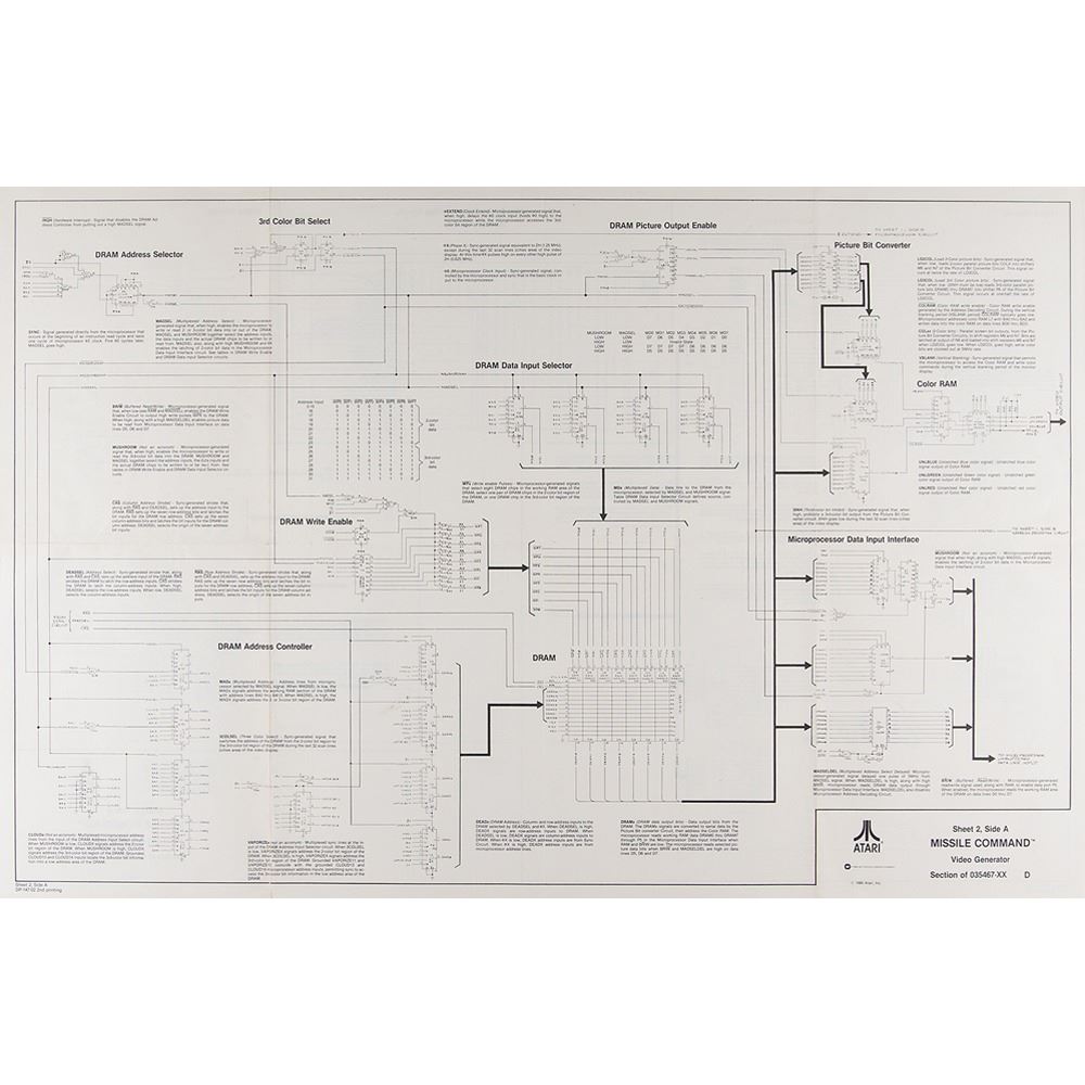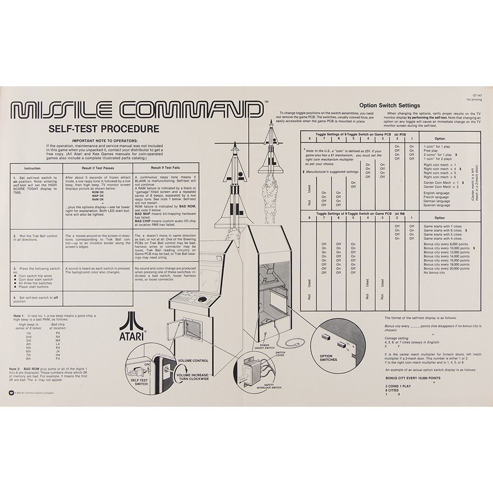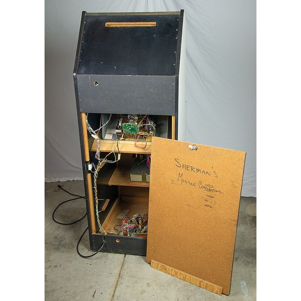Very rare working preproduction prototype of the classic Atari, Inc. shoot 'em up arcade video game Missile Command, deriving from the personal collection of Atari hardware designer David Sherman, who has signed on the inside of the cabinet in black felt tip, “Sherman’s Missile Command.” Missile Command was one of the iconic arcade games from the Golden Age of Atari and is now deemed widely as a landmark achievement in the video game industry. A distinct departure from the ‘overhead, sprite’ style of video games popular at that time, Missile Command was Atari's first color frame buffer game, allowing arbitrary display graphics limited only by processor speed. More significantly, the game ‘captured and bottled’ the angst and dread of the Cold War, which daily threatened the minds of everyday citizens who believed that a nuclear war with the Soviet Union was imminent. The game was featured in popular science fiction movies such as War Games and Terminator 2 as ironic foils for the plots.