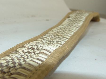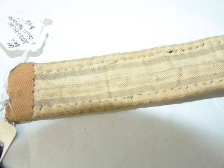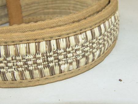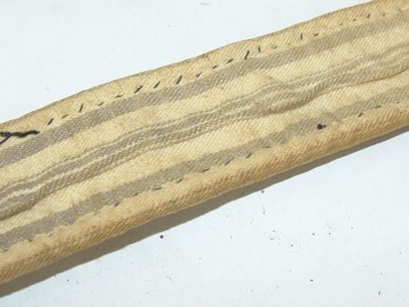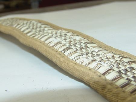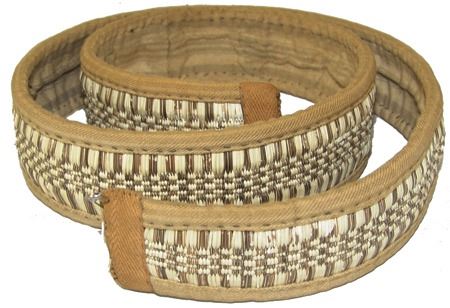 Early 1900s, Rare and very finely quilled belt done on canvas and lined with prison mattress material. Natural color, no dyes. Very good condition, very few missing/damaged quills. 35-1/2" long