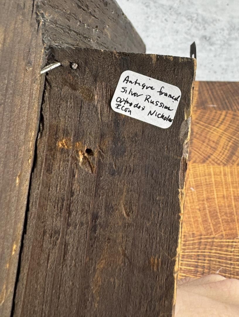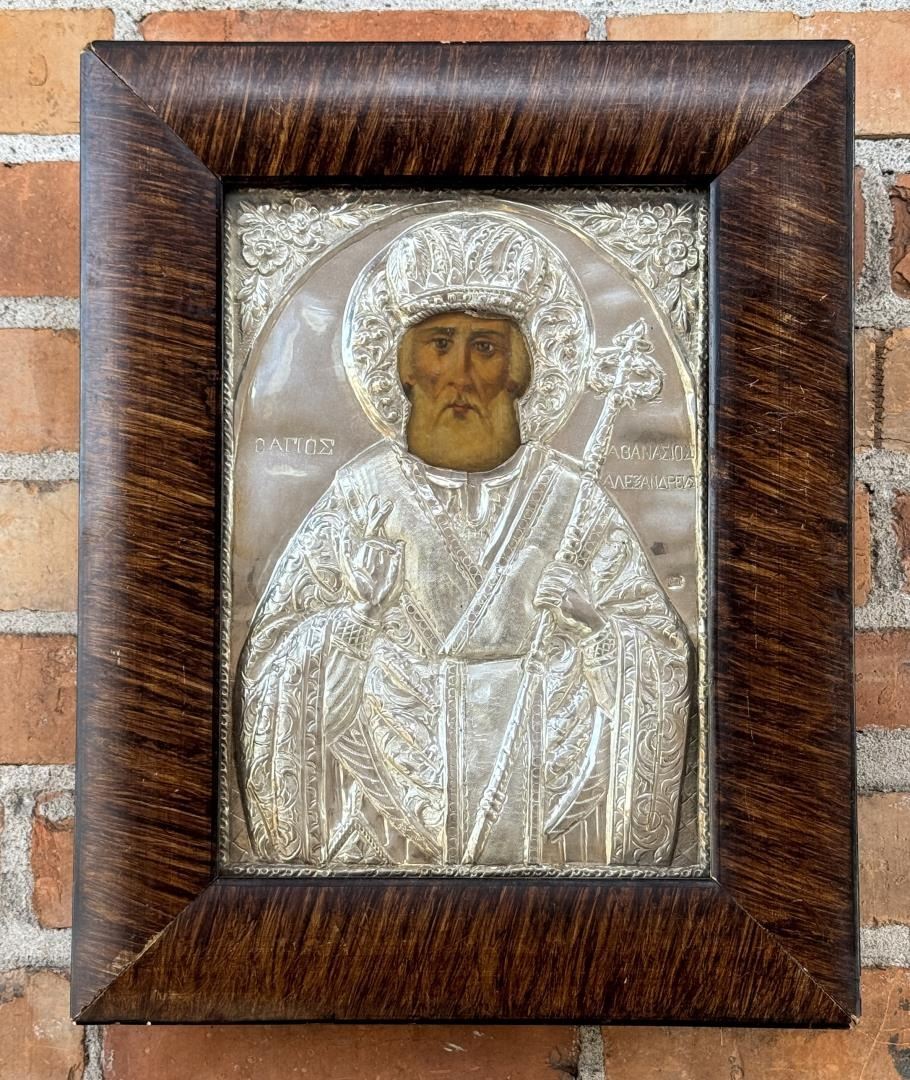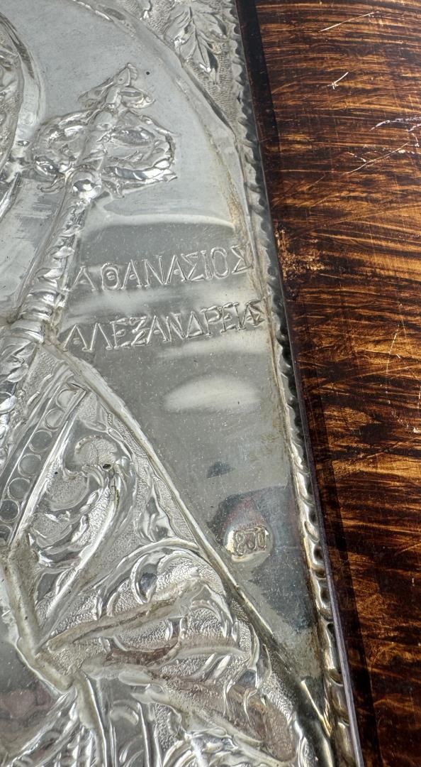 Nice Antique Icon. Covered in .800 Silver. 12 5/8" by 16" framed.