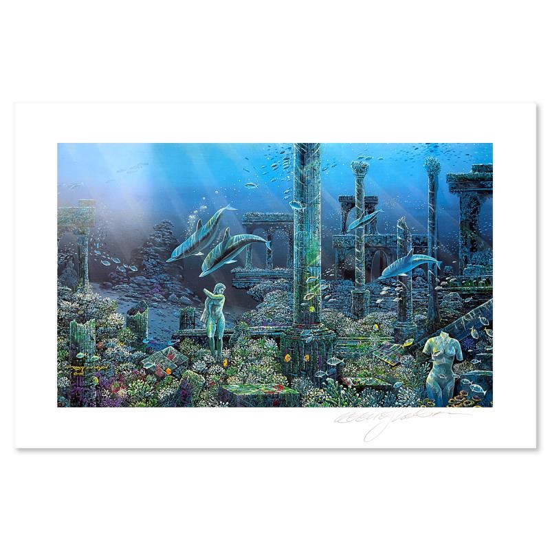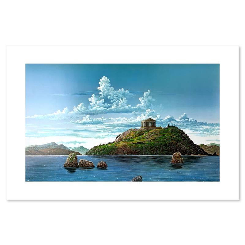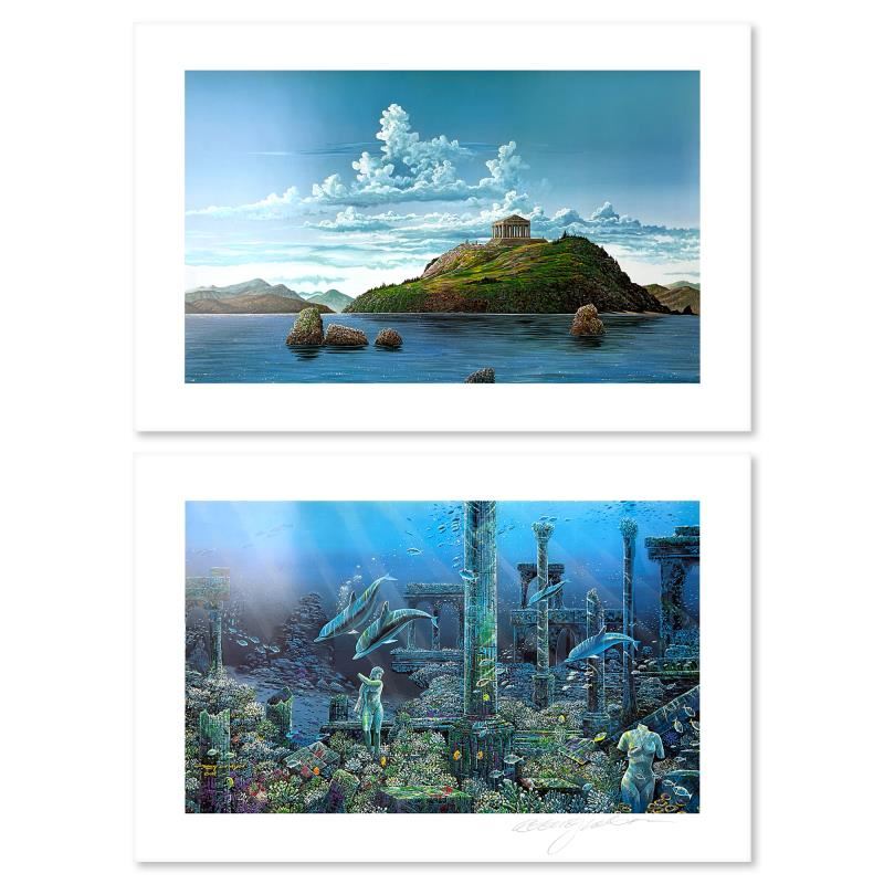 "Athenian Odyssey (Diptych)" is a limited edition mixed media on paper by Robert Lyn Nelson, numbered and hand signed by the artist. Includes Letter of Authenticity. Measures approx. 41" x 28" (image). There are minor imperfections on the paper but the piece is in overall good condition.