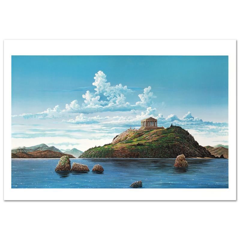 "Athenian Odyssey" is a limited edition mixed media diptych on paper by Robert Lyn Nelson, numbered and hand signed by the artist with hand drawn Remarque! Please note that each hand drawn Remarque may vary from piece to piece. Includes Certificate of Authenticity! Measures approx. 26" x 16" (each piece).