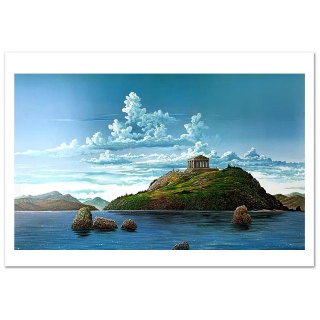 "Athenian Odyssey" is a limited edition mixed media diptych on paper by Robert Lyn Nelson, numbered and hand signed by the artist! Includes letter of Authenticity! Measures approx. 26" x 16" (each piece).