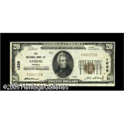 <B>Athens, GA</B></I> - $20 1929 Ty. 1 <B>The NB</B></I> Ch. # 1639<BR>Another chance to acquire a note from this bank. The technical grade of <B>Very Fine</B></I> underestimates the considerable eye appeal this example still displays. Lot:16827