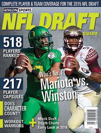 The NFL is undoubtedly the most popular sport in America. After that? It’s the NFL Draft, of course. Sure, it’s not technically a sport, but the draft receives as much attention — from both media and fans — as any sporting event in the calendar year. From early February through late April, one subject dominates talk radio and Internet message boards in NFL cities — which player will my team select in the first round. With that in mind, we thought now would be a good time to jump into the market with a magazine previewing the NFL Draft. And once that decision was made, we quickly enlisted Dan Shonka from Ourlads Scouting Services to provide our scouting reports and rankings. Dan has served as the general manager and national scout for Ourlads since 2004. Prior to that, he spent over three decades in the game as a coach and scout. He has a combined 16 years of experience working for professional football teams, including the Eagles, Redskins and Chiefs in the NFL and the Philadelphia Stars in the USFL. Clearly, Dan knows his football and knows how to evaluate talent. With Dan’s guidance, Athlon Sports NFL Draft Guide dives deep into the 2015 draft class with in-depth scouting reports on 217 of the top prospects. We also take a detailed look at every NFL team with depth charts and needs for the upcoming season. Our draft magazine also includes a mock draft, a draft board, position-by-position rankings of more than 500 draft-eligible players, a peek ahead at the 2016 draft and much more.Athlon Sports NFL Draft Guide offers the most complete preview of the 2015 draft. Order your copy now!
