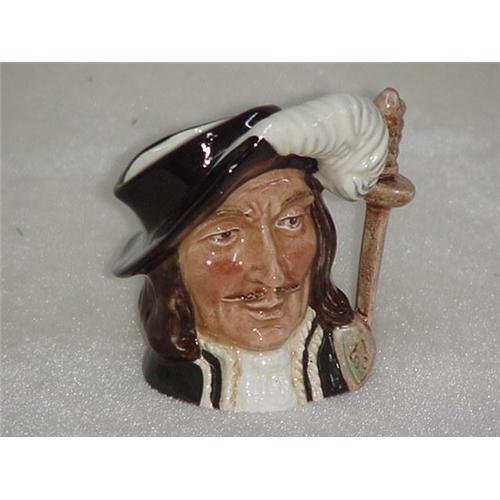 A miniature Royal Doulton character jug "Athos" one of the three musketeers, 2 1/2" tall # D.6509, Copyright 1955. Condition is excellent.
