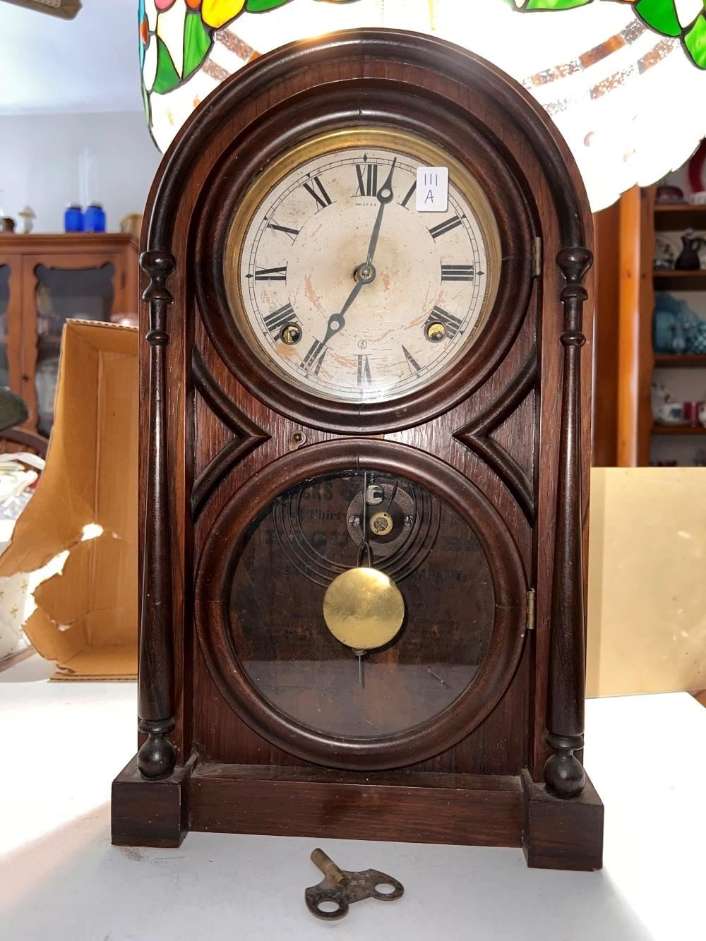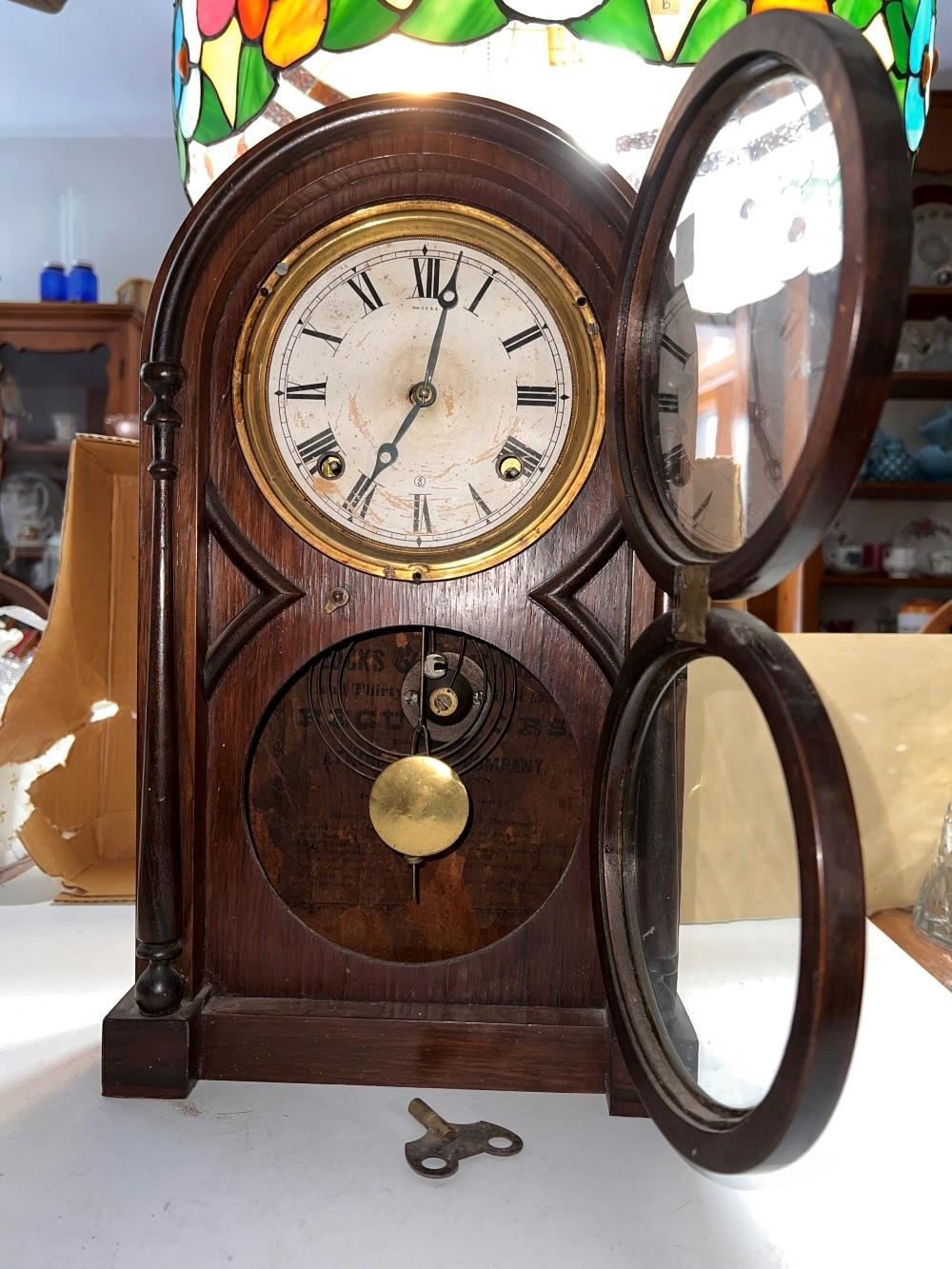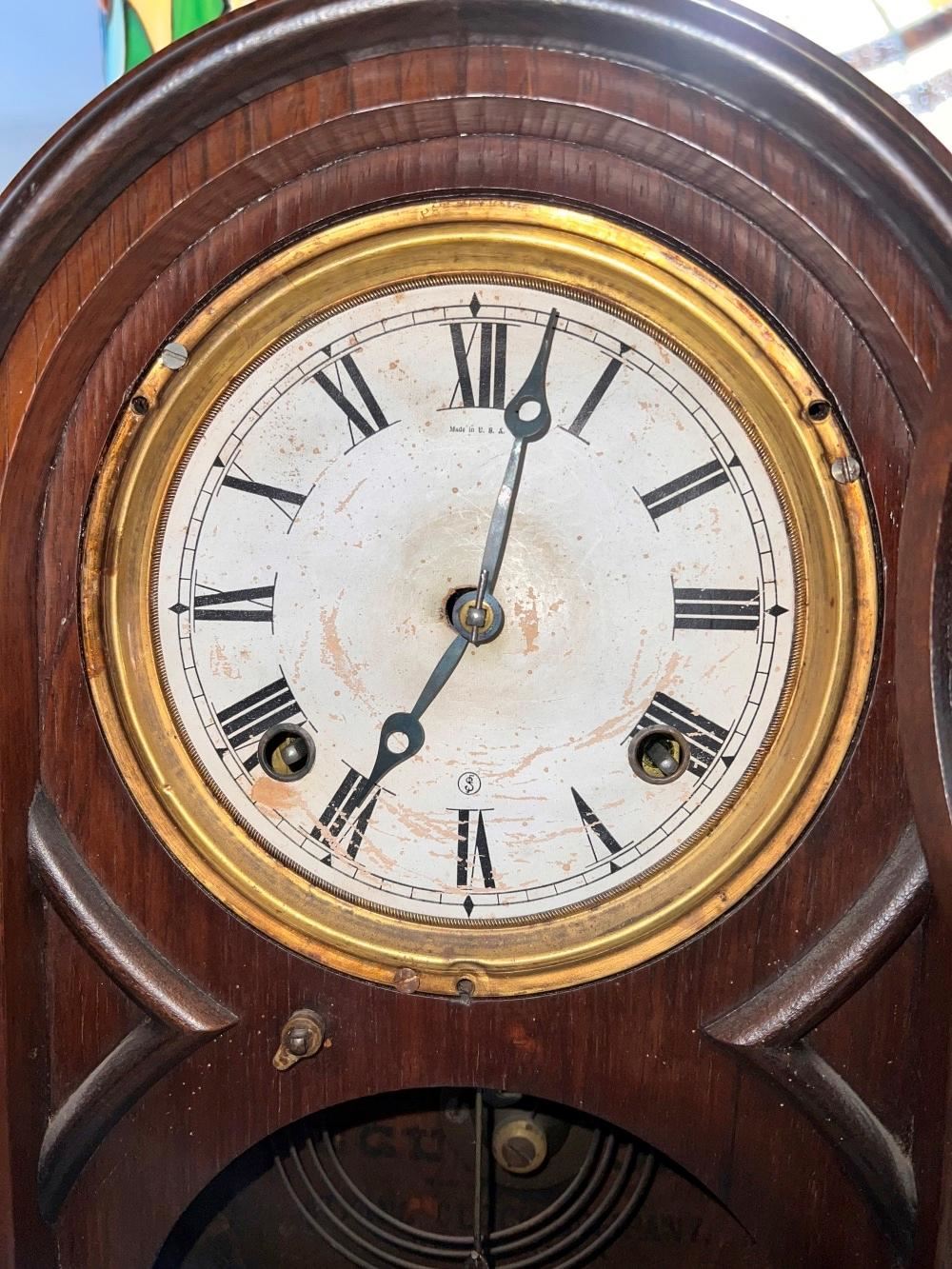 Atkins Regulator Clock made at Atkins Clock Company in Bristol, Conn. Patented on August 13th, 1867. Approx. 16.5 inches tall x 10 inches wide x 4.5 inches deep.