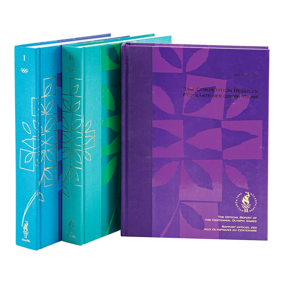 Atlanta 1996 Summer Olympics Official Report: The Official Report of the Centennial Olympic Games, Volumes I-III: Planning and Organizing; The Centennial Olympic Games; and The Competition Results (English/French). First edition. Atlanta: Peachtree, 1997. Hardcovers with slipcase, 9.25 x 12.25, 1503 pages. In fine condition. An attractive and comprehensive record of the historic centennial Olympiad.
