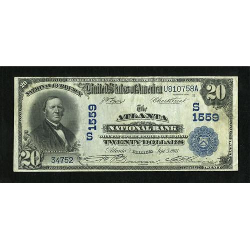 <B>Atlanta, GA</B></I> - $20 1902 Date Back Fr. 643 <B>The Atlanta NB</B></I> Ch. # (S)1559<BR> A high grade Date Back bearing the first title used here. Bright <B>Very Fine-Extremely Fine.</B></I> <BR><I>From The Amelia Island Collection.</B></I><BR><BR><b>Shipping:</b> Coins & Currency (<a target="_blank" href="http://www.heritageauctions.com/common/shipping.php">view shipping information</a>)