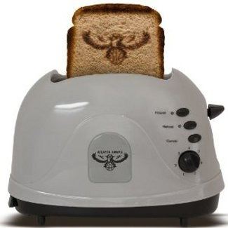 Does your breakfast lack team spirit? Spice up the most important meal of the day with this Pangea Brands® ProToastTM 2-Slice toaster. The retro-style appliance leaves the mark of the Atlanta Hawks emblem on every piece of bread. Features the Hawks logo on the outside and toasts your bread in the Hawks logo. Adjustable settings for desired toasting levels. Includes a setting for frozen breads. Works on white and wheat bread, as well as frozen waffles and English muffins. Made in China, final assembly in USA. UL tested and approved. Dimensions: 8'' H x 12'' W x 6'' D.