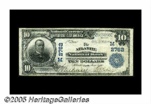 <B>Atlantic, IA</B></I> - $10 1902 Plain Back Fr. 624 <B>The Atlantic NB</B></I> Ch. #(M) 2762<BR>We sold this very note in our 2004 FUN Signature Sale for $1,121.25. Prior to that there had been no other offering from here in the previous five years. The underbidder in Florida will have another chance tonight to acquire this elusive institution. <B>Fine+.</B></I>