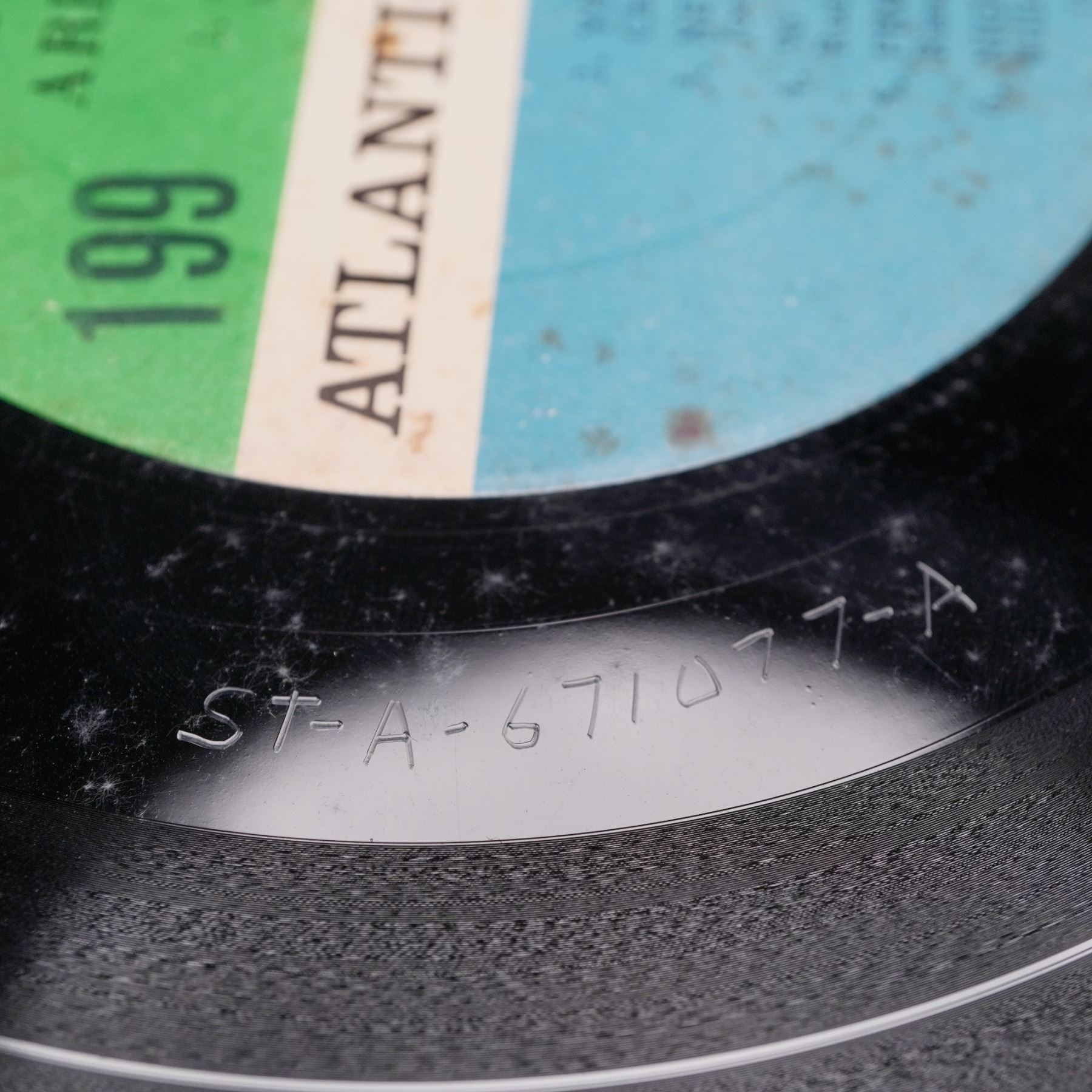 This original pressing of Aretha Arrives by Aretha Franklin, released under Atlantic Recording Corporation. Showcases the Queen of Soul at a pivotal point in her career. Encased in a gray toned jacket featuring a poised photographic portrait of Franklin on the front and accompanied by in depth liner notes and a full track listing on the reverse. The track list includes renditions of iconic songs such as "Satisfaction," "You Are My Sunshine," and "Baby, I Love You," alongside a series of impassioned ballads and blues-inflected grooves. The LP itself bears the green-and-blue Atlantic stereo label.