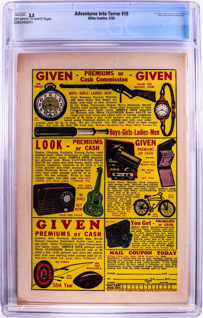 One Atlas Comics Adventures Into Terror #19 Comic Book 5/53 CGC 3.5. CGC Graded.