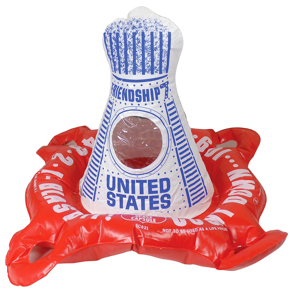 A plastic model of an Atlas rocket, 19.5? long, with no visible manufacturer’s identification; and a Friendship 7 inflatable pool toy manufactured by Pur-O-Lator in 1962. In fine condition, with several dings and chips to body of rocket, as well as a missing piece to bottom portion above the nozzles.