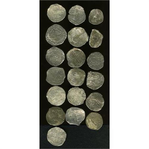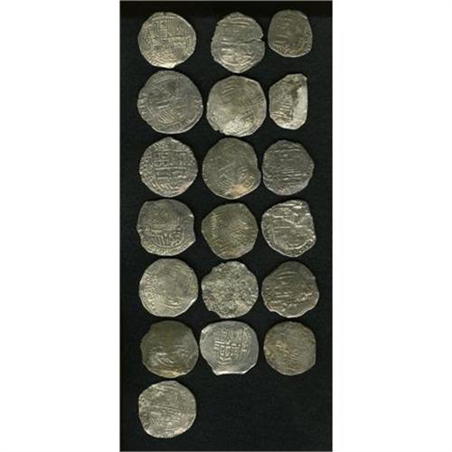 <B>Atocha. 19-piece lot of Philip III 8 Reales,</B></I> various assayers, 18 pieces w/certificates, but no grades on certificates. One piece with no cert, but with Treasure Salvors insert, computer #, and bar code. <B>Sold as is, no return lot.</B></I><BR><I>From the Treasures of the Sea</B></I><BR><BR><b>Shipping:</b> Coin/Currency (<a target="_blank" href="http://www.heritageauctions.com/common/shipping.php">view shipping information</a>)