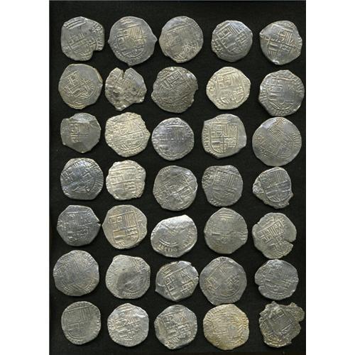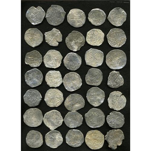 <B>Atocha. 35-piece lot of Grade 2 Philip III 8 Reales with Certificates,</B></I> various assayers. <B>Sold as is, no return lot.</B></I><BR><I>From the Treasures of the Sea</B></I><BR><BR><b>Shipping:</b> Coin/Currency (<a target="_blank" href="http://www.heritageauctions.com/common/shipping.php">view shipping information</a>)