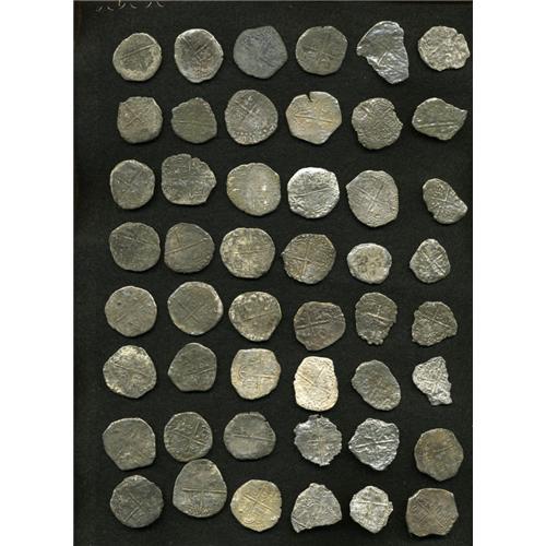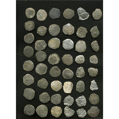 <B>Atocha. 48-piece lot of Grade 4 Philip III 4 Reales with Certificates,</B></I> various assayers. <B>Sold as is, no return lot.</B></I><BR><I>From the Treasures of the Sea</B></I><BR><BR><b>Shipping:</b> Coin/Currency (<a target="_blank" href="http://www.heritageauctions.com/common/shipping.php">view shipping information</a>)