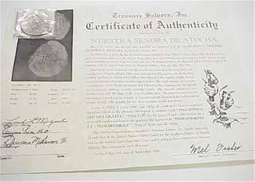 Atocha Treasure 8 Reale with certificate of Authenticity Grade II