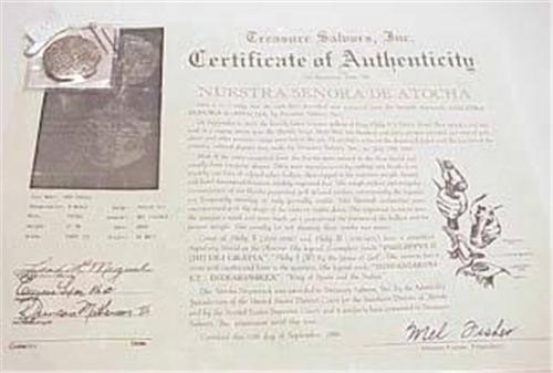 Atocha Treasure 8 Reale with certificate of Authenticity Grade III