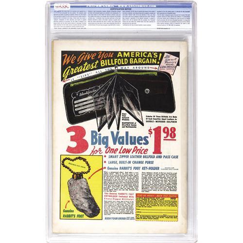 48C. COMICS – Comic books sold referencing a third-party grading service are sold "as is" without any express or implied warranty. Certain warranties may be available from the grading services and the Bidder is referred to them for further details: Comics Guaranty Corporation (CGC), P.O. Box 4738, Sarasota, FL 34230. Subject to sections 57 and 58, bidders who intend to challenge authenticity or provenance of a lot must notify Auctioneer in writing within thirty (30) days of the Auction's conclusion. Auctioneer's maximum liability shall not exceed the high bid on that lot, which bid shall be deemed for all purposes the value of the lot. In the event Auctioneer cannot deliver the lot or subsequently it is established that the lot lacks title, provenance, authenticity, or other transfer or condition issue is claimed, Auctioneer's liability shall be limited to recission of sale and refund of purchase price. After one year has elapsed, Auctioneer's maximum liability shall be limited to any commissions and fees Auctioneer earned on that lot.