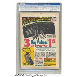 <B>Atomic Comics #2 (Green Publishing Co., 1946) CGC VF+ 8.5 Cream to off-white pages.</B></I> Though a number of atomic-themed comics debuted in the 1950s, this title hit newsstands in <I>1946</B></I>, mere months after the first atom bomb was dropped. But as you can see from our cover scan, the concept of mutations caused by atomic power was present from the get-go. The cover artist is unknown, but we do know that the highly collectable Matt Baker drew an interior story. This issue received the "uncommon" designation in Gerber's <B>Photo-Journal</B></I>. Only one copy of this issue has been certified with a higher grade by CGC to date. Overstreet 2004 VF 8.0 value = $381; VF/NM 9.0 value = $571. <BR><BR><B>Important notice:</B> Heritage usually auctions material at the rate of 200-250 lots per hour. On some occasions eBay Live bid software or the Internet may not be able to keep up with the pace of the auction. We recommend placing a realistic absentee bid now as insurance to avoid disappointment. Occasionally the auctioneer may eliminate or reject an eBay Live bid, and the auctioneer may also reopen a lot after the close of the eBay live bidding (usually because we missed an audience bid), and may reject your bid even if it shows you as the winning bidder. By bidding via eBay Live, you agree that Heritage may award the lot to another bidder at its sole discretion under the circumstances described above or any other reasonable circumstances. Since eBay bids are not shown to us until we open the lot on the floor, we treat those bids just like floor bids. In most cases the floor responds before the eBay bid is presented to us, due to Internet lag time, so for consistency we have made it a policy that floor bids are always considered first over tie eBay live bids. Also please note that all Heritage lots purchased through eBay Live carry a 20% Buyer's Premium. Please make sure you read the Terms and Conditions before you bid.