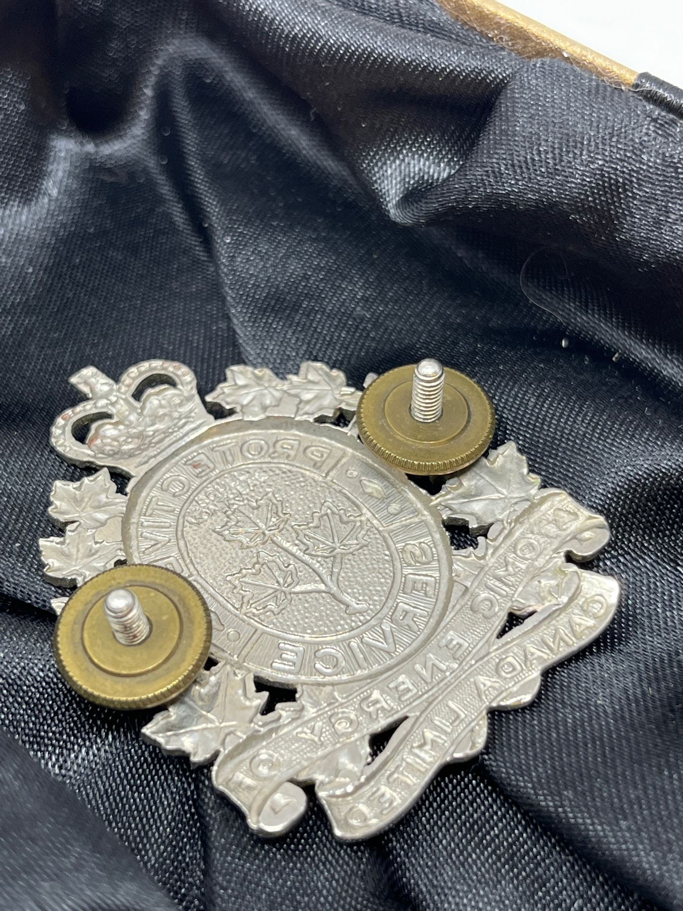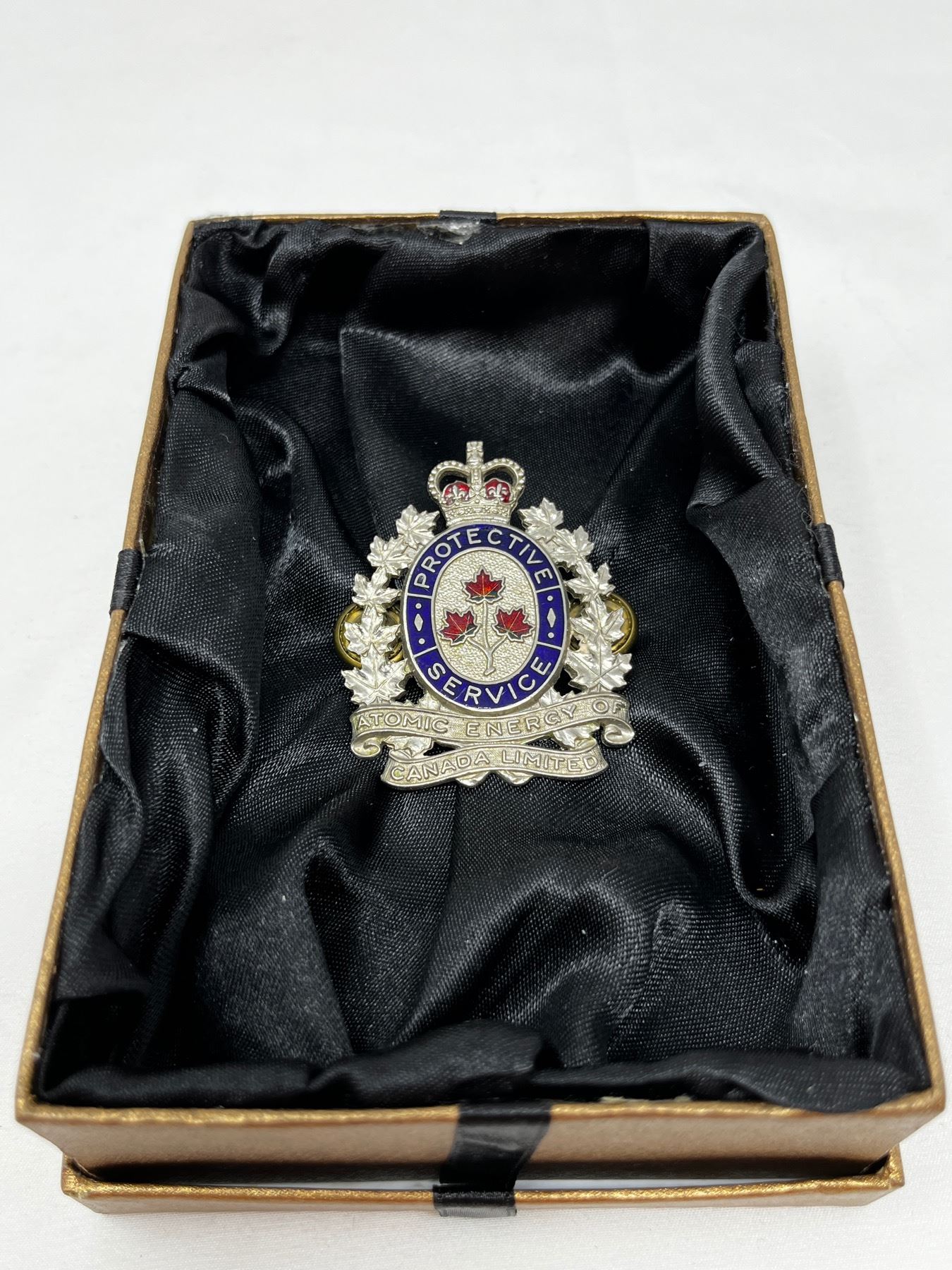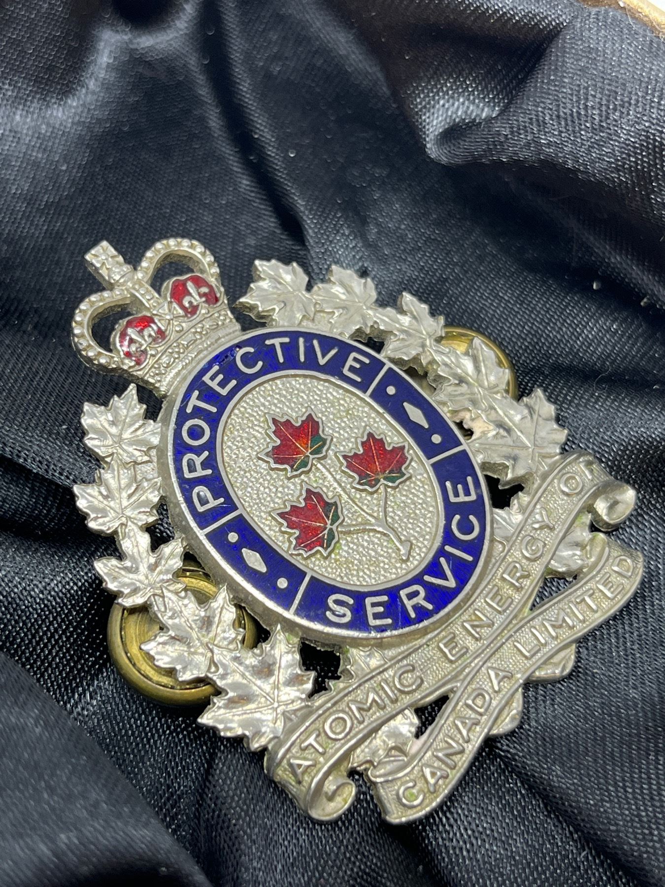 Scarce atomic energy Canada cap badge used by the security services at Canada's nuclear power plants.
