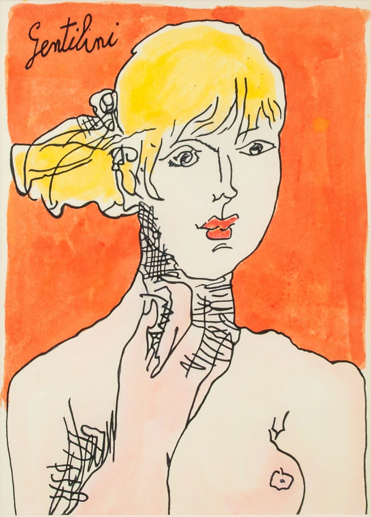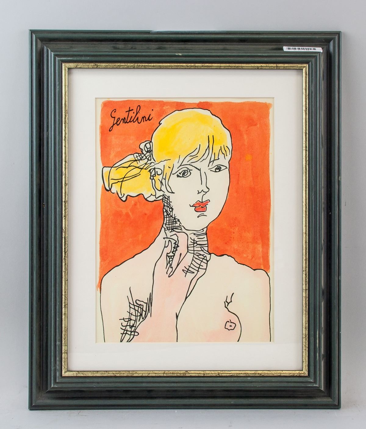 Mixed media on paper, newly framed. Featuring a portrait of a woman. Signed and attributed to Franco Gentilini (Italian, 1909-1981) on the upper left corner. 28 x 20.5 cm (11.0 x 8.1 inches). Frame size: 44 x 36.5 cm (17.3 x 14.4 inches). Franco Gentilini worked as a ceramist in Faenza and collaborated with Giovanni Romagnoli and Giorgio Morandi in Bologna. He took part in numerous editions of the Venice Biennale, beginning with the acceptance of his work for the 17th Esposizione Internazionale d’Arte della Città di Venezia in 1930, when he also visited Paris. He moved to Rome in 1932 and held his first solo show at the Galleria di Roma with works in an archaic style inspired by pre-Renaissance Italian art. He also established himself as a fresco painter. He took part in the 5th Esposizione Internazionale delle Arti Decorative in Milan in 1933 and the 2nd Quadriennale Nazionale d’Arte in Rome in 1935, on which occasion the city’s governing body bought one of his works. It was in the late 1930s that he began to associate with the artists of the Roman School. There was considerable demand for his work among private Italian collectors after World War II, not least because of his participation in numerous exhibitions. PROVENANCE: Southern Ontario estate