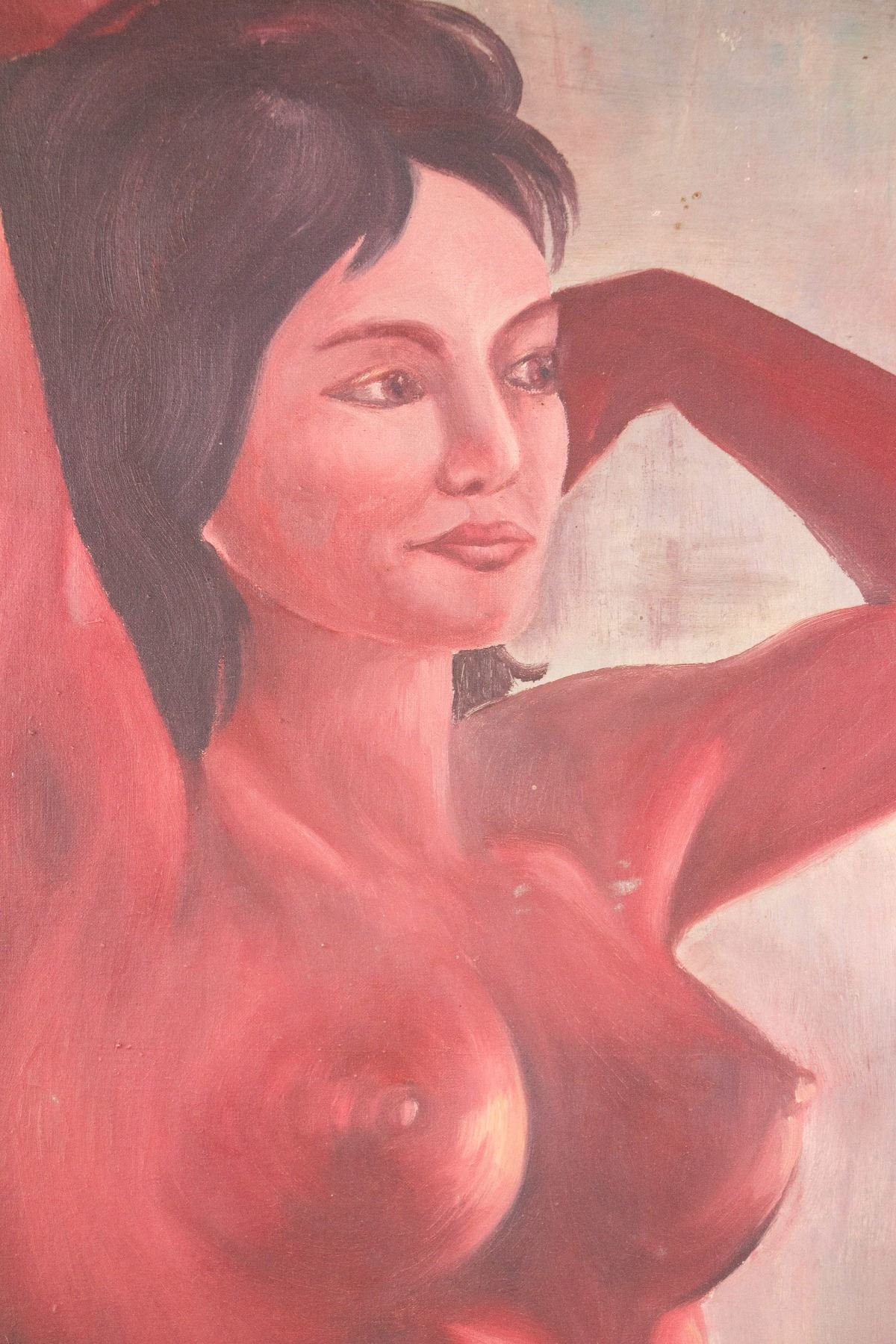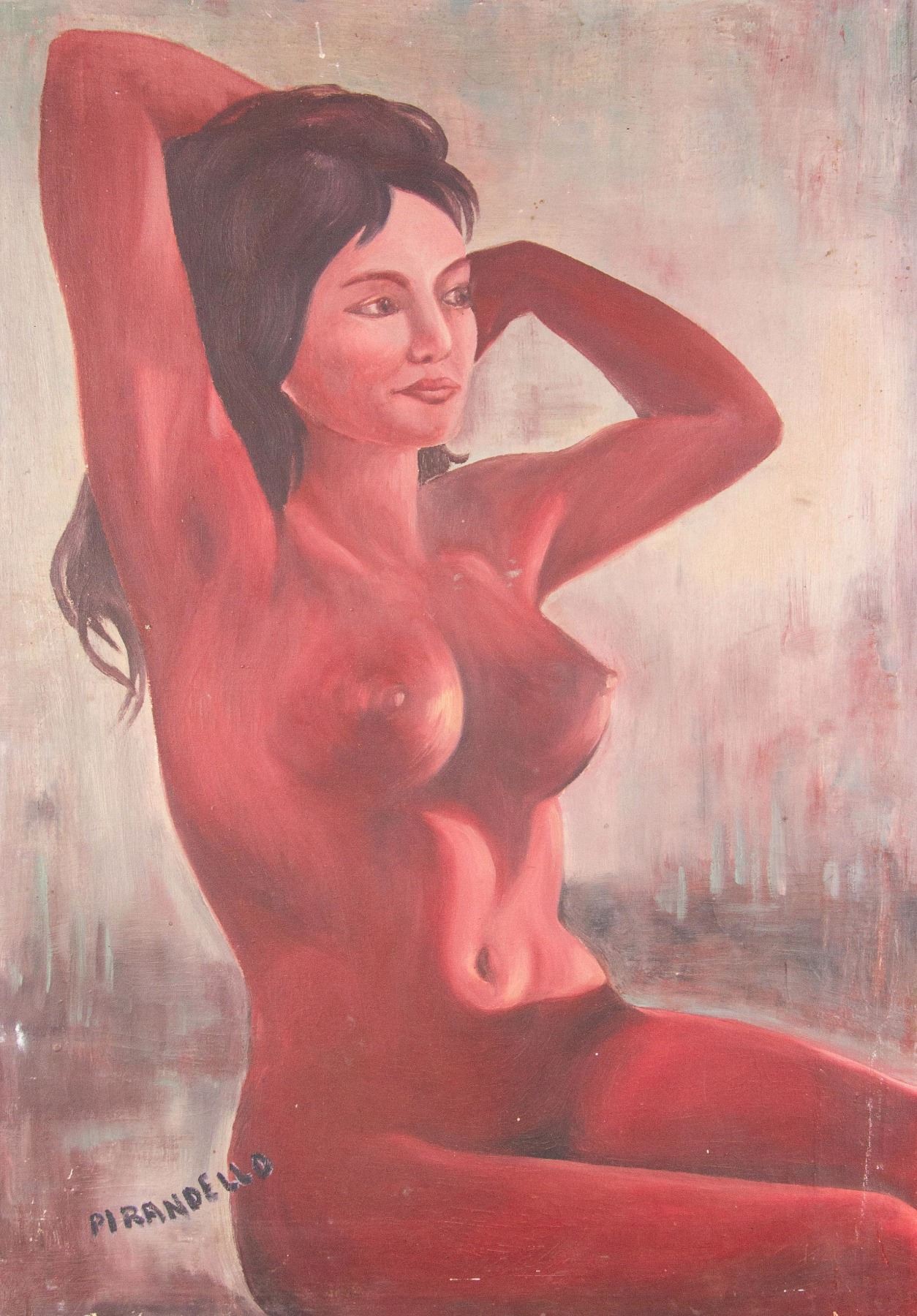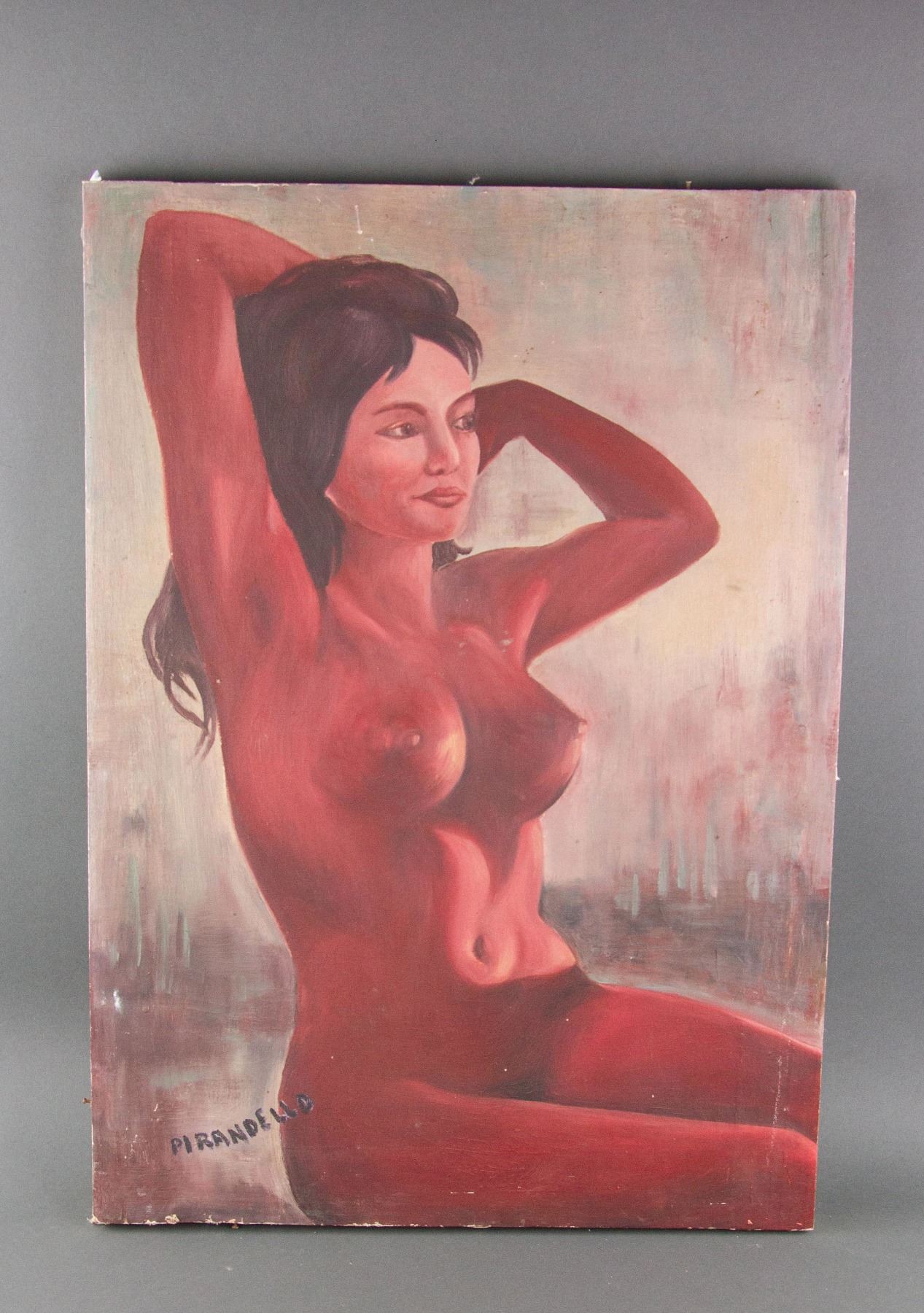 Painting of naked woman; oil on canvas; signed on left lower corner Attributed to Fausto Pirandello (1899-1975), Italian artist; 74 inch x 50 inch