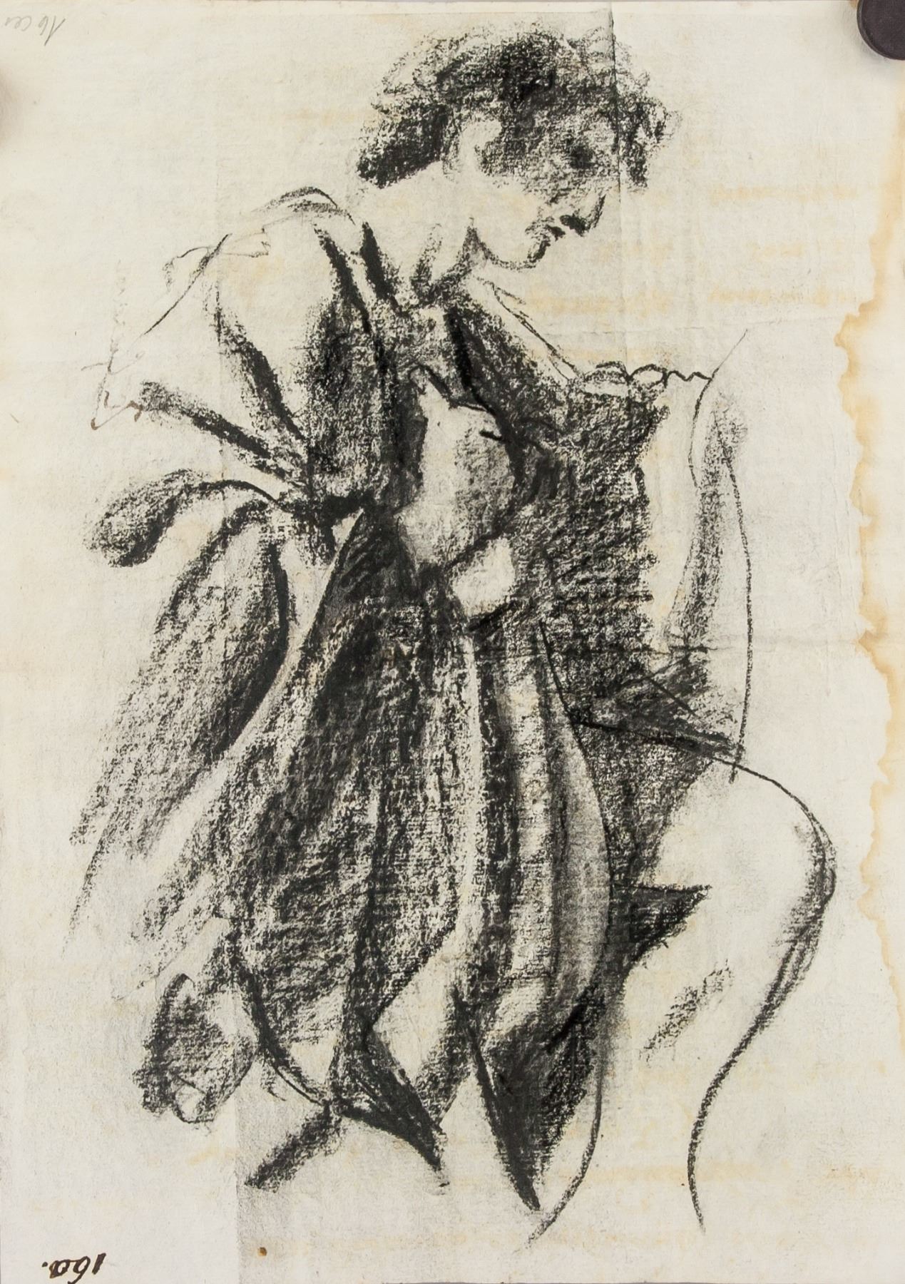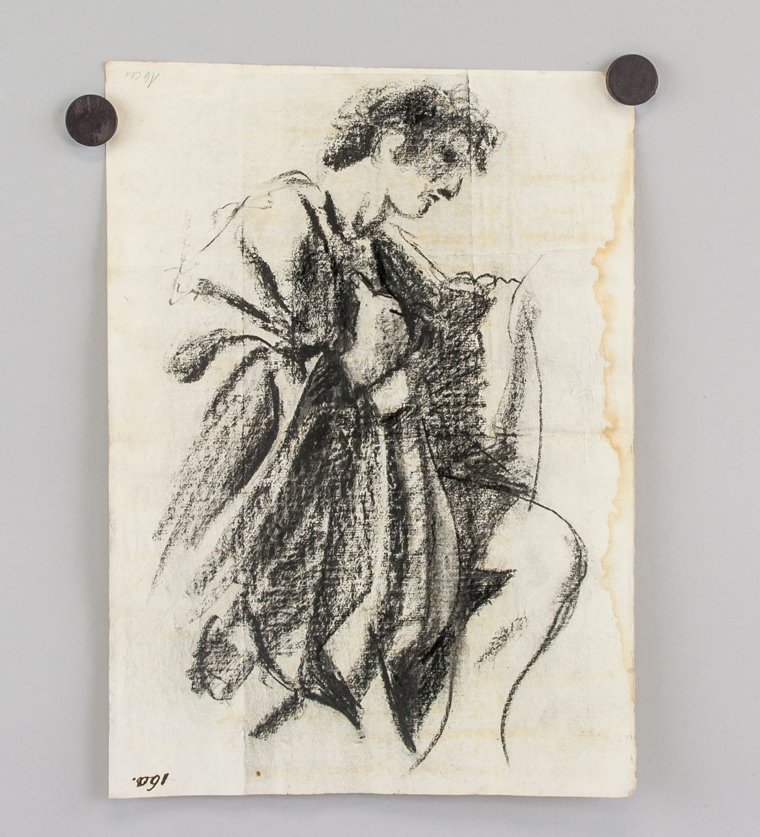 Charcoal on paper. Signed and attributed to Giovanni Francesco Barbieri, Guercino (Italian, 1591-1666). 10.5 x 7.75 in. (26.7 x 19.7 cm). Giovanni Francesco Barieri, best known as Guercino was an Italian Baroque painter and draftsman from the region of Emilia, and active in Rome and Bologna. The vigorous naturalism of his early manner is in contrast to the classical equilibrium of his later works. His many drawings are noted for their luminosity and lively style. PROVENANCE: Private estate (Perugia, Italy)