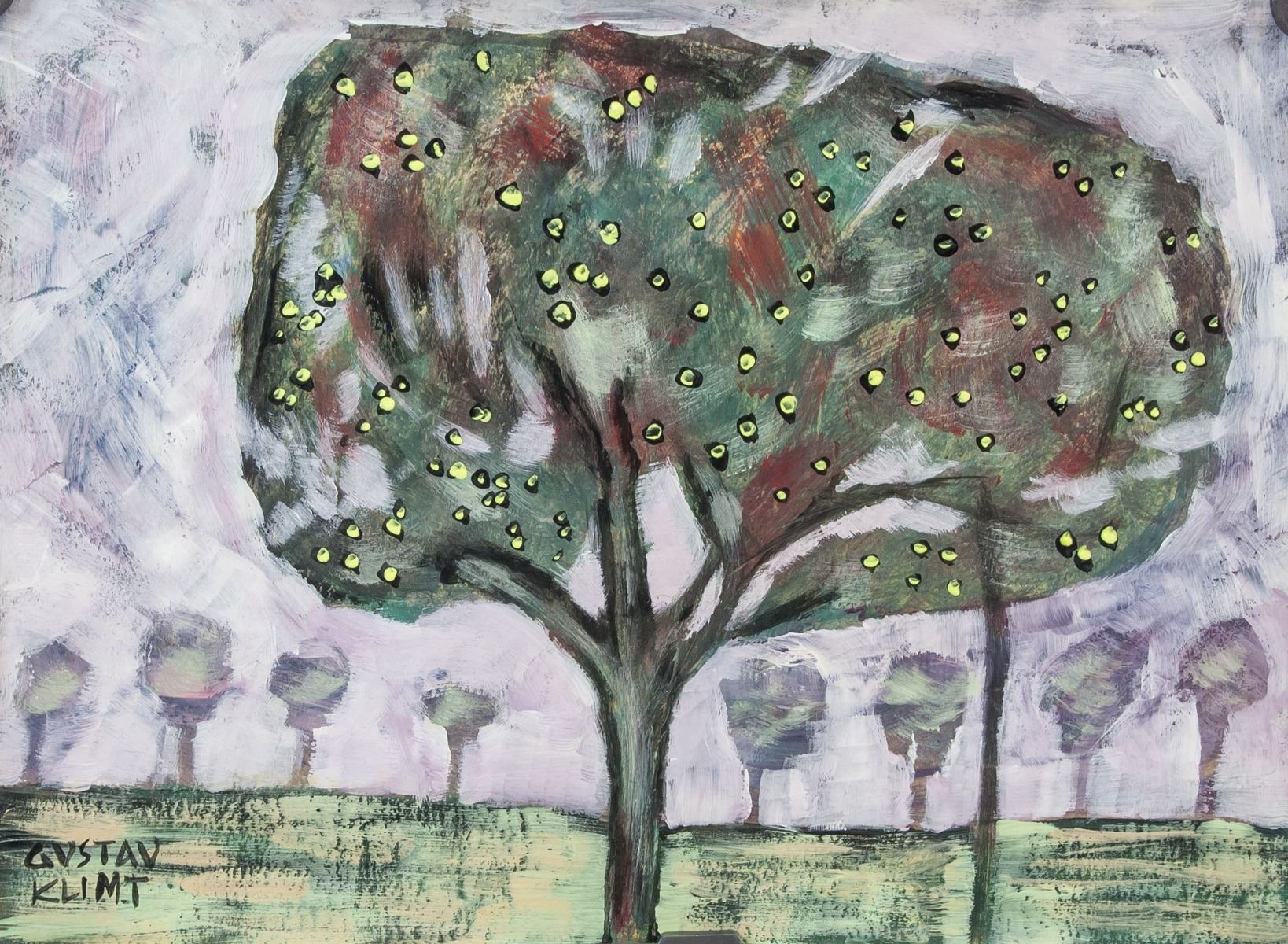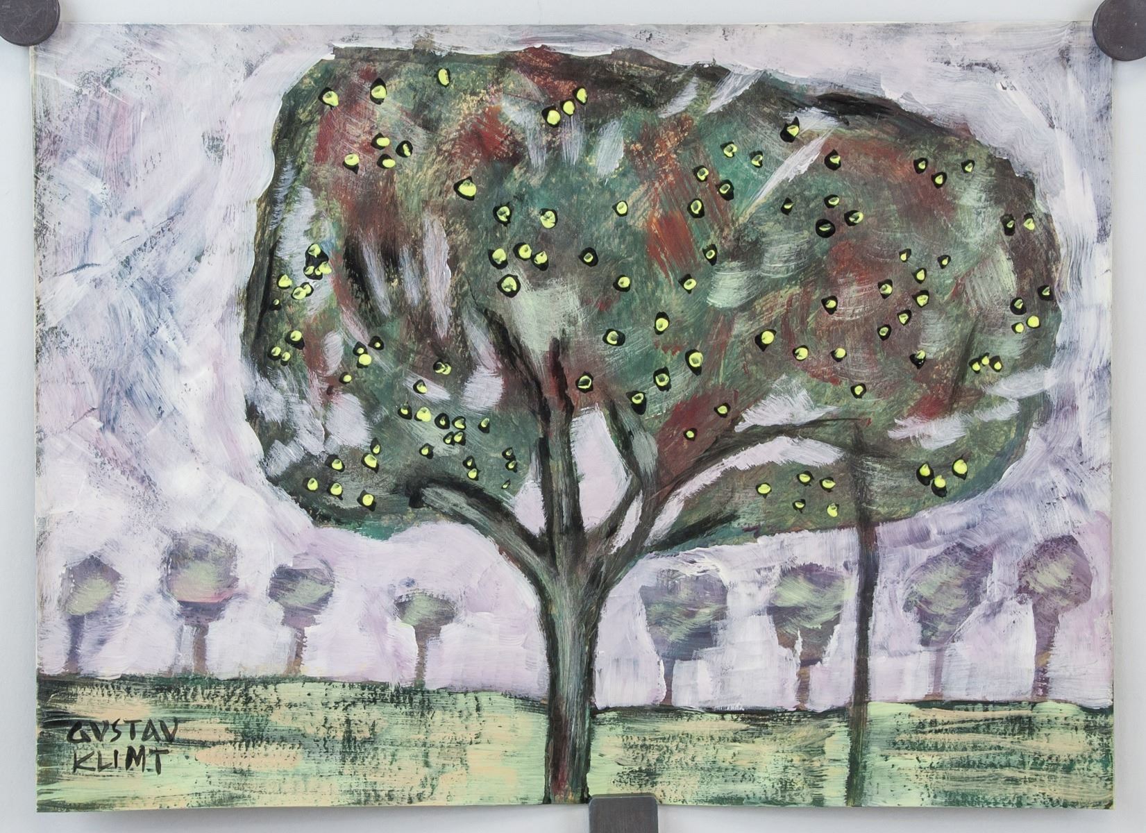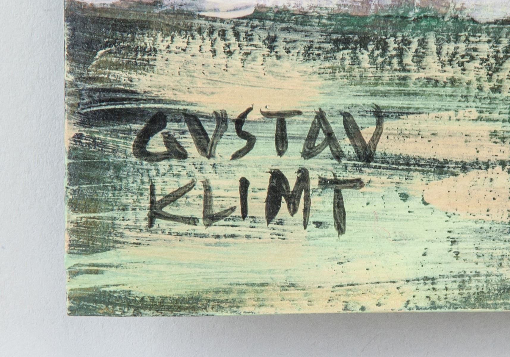 Tempera on paper. Featuring a surreal landscape scene. Signed and attributed to Gustav Klimt (Austrian, 1862-1918) on the lower left corner. Marked with gallery seal and notation in pencil on verso. 22 x 30 cm (8.7 x 11.8 inches). Gustav Klimt is best known for his opulently gilded art nouveau portraits of women that epitomize fin-de-siecle Vienna. His Symbolist pastiches of pale nudes, allegorical gardens and erotic content served as the basis for many American psychedelic poster designs in the 1960s. Early in his career, Klimt was supported generously by the Viennese community, and received several commissions for murals in theaters and the Museum Kunsthistorisches. Early narrative paintings depicted heavy subjects such as anxiety, doubt, sexuality, and death, but in later years, he turned toward landscape painting, exploring light and abstract patterns of nature. His most famous paintings are The Kiss (1907) and Portrait of Adele Bloch-Bauer (1907), which sold for a record auction price of more than 100 million dollars in 2006. PROVENANCE: Private estate (Toronto, ON)