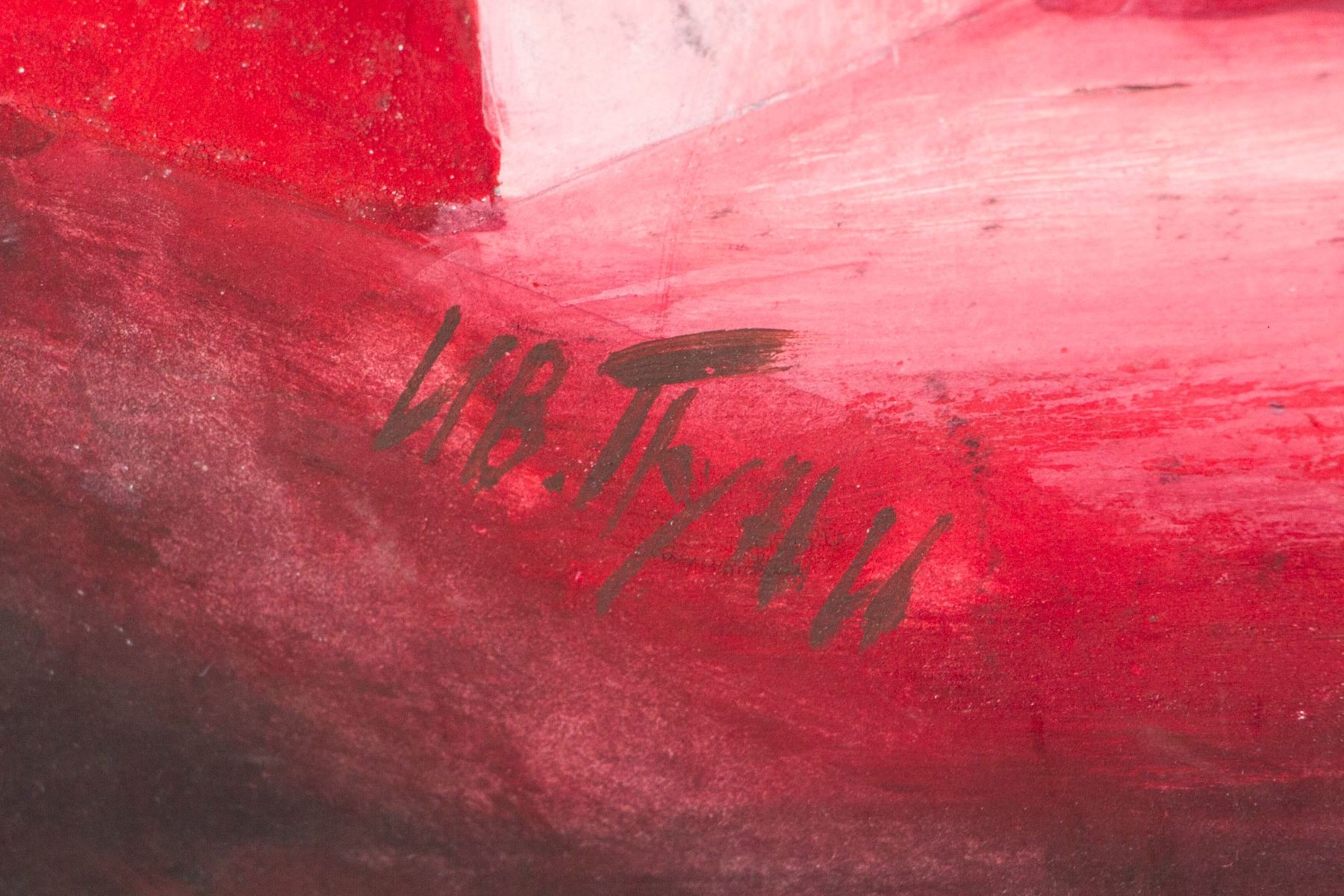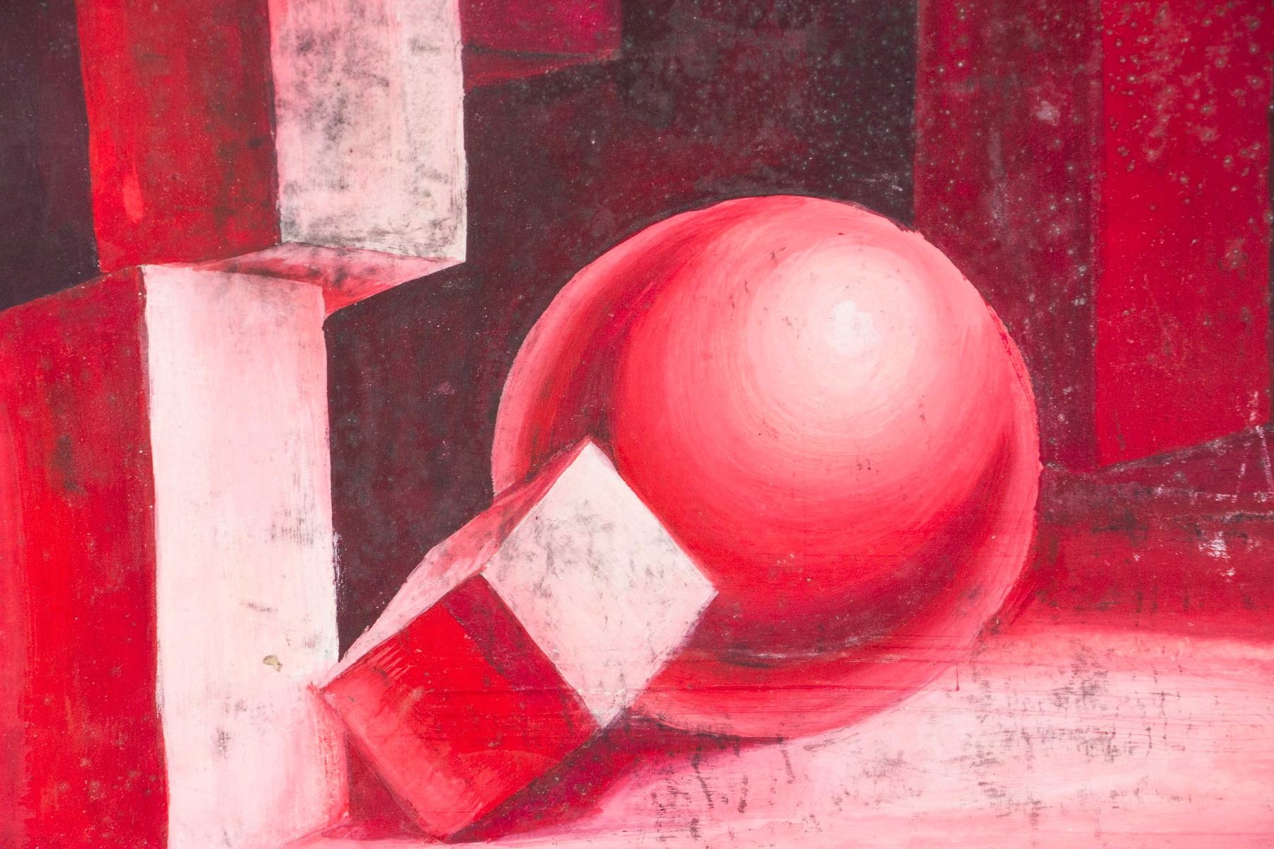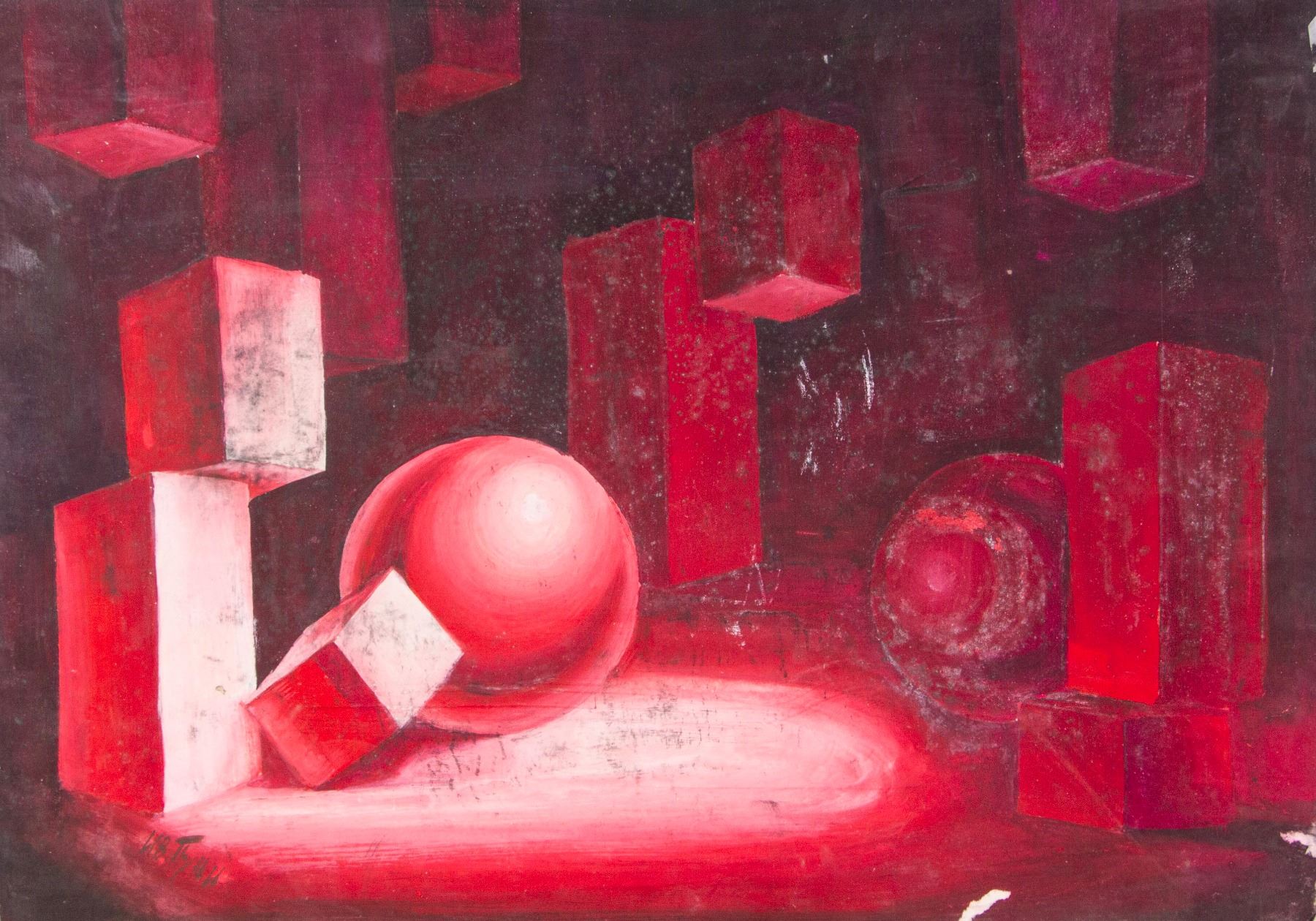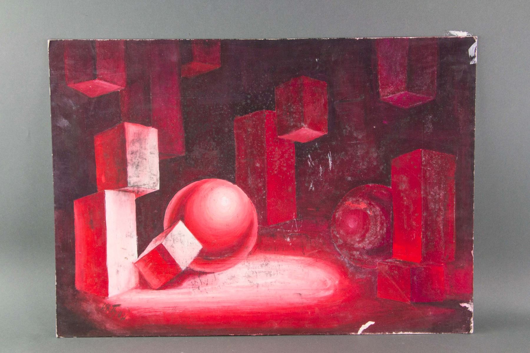 Abstract painting of geometric form; oil on board; signed on left lower corner attributed to Ivan Puni (1892-1956), Russian artist; 19.5 inch x 27 inch