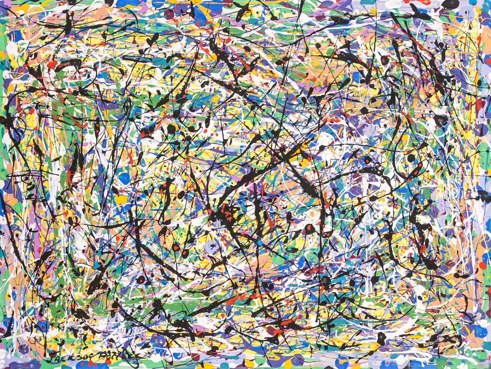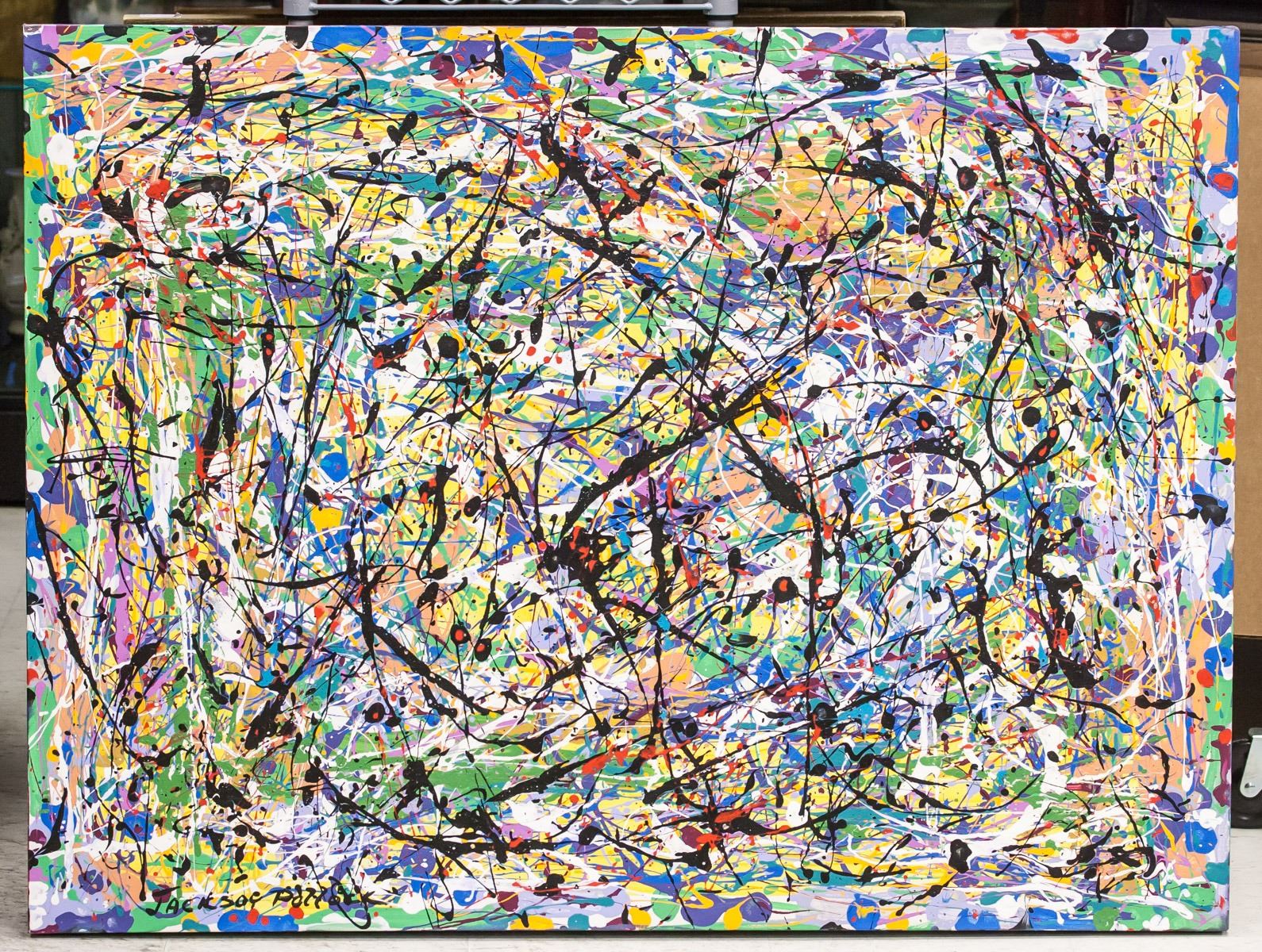 Acrylic on canvas. Featuring a drip abstract composition. Signed Jackson Pollock on the lower left corner. Attributed to Jackson Pollock (1912-1956, American). 92 x 122 cm (36 x 48 inches). Provenance: This lot carries limited provenance from a Toronto estate