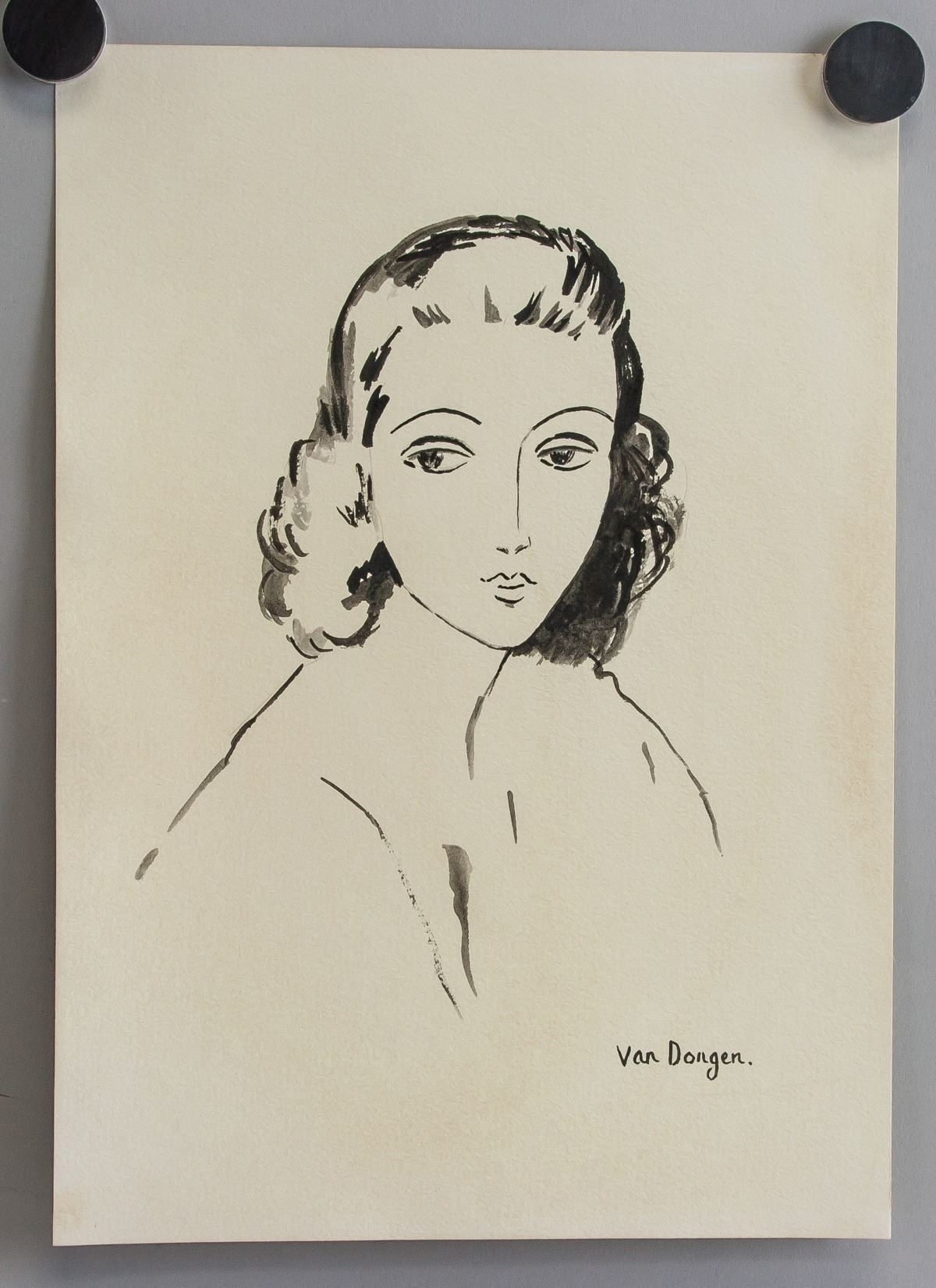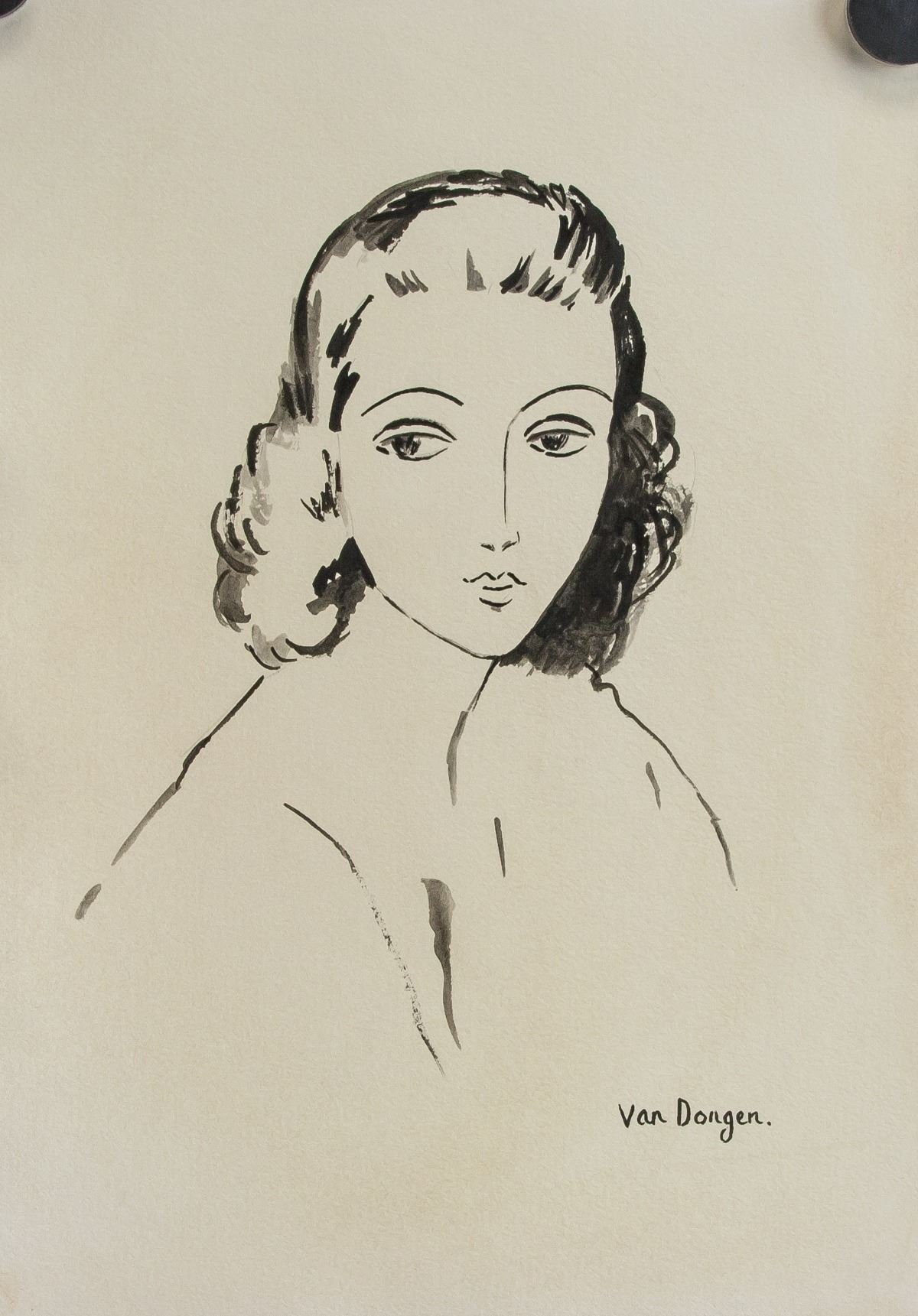 Ink on paper. Featuring a portrait of a girl. Signed and attributed to Kees Van Dongen (Dutch, 1877-1968) on the lower right corner. 29.5 x 21 cm (11.6 x 8.3 inches). Kees van Dongen was a Dutch-French artist known for his vibrant paintings and prints of almond-eyed women and bourgeois leisure scenes. Some of the painter’s most famous works depict fashionable celebrities, including the French actress Brigitte Bardot. "The essential thing is to elongate the women, especially to make them slim," he said of his models. "After that, you just need to make their jewelry bigger." Born Cornelis Theodorus Maria van Dongen on January 26, 1877 in Rotterdam, Netherlands, he studied at the Akademie voor Beeldende Kunsten of Rotterdam, where he created somber-toned landscapes inspired by Rembrandt. Financed by his father, the artist moved to Paris in 1897 where he frequented the bars and cabarets of Montmartre. Affiliated with the Fauvists Henri Matisse, Maurice de Vlaminck, and Andre Derain, Van Dongen’s use of color and expressive line became integral to his style. In 1926, the artist was inducted into the French Legion of Honor, and, in 1927, awarded the Order of the Crown of Belgium. His favorable treatment by the Nazis during their occupation of Paris during World War II, led to the artist and his work falling from grace after the war. Van Dongen died on May 28, 1968 in Monte Carlo, Monaco at the age of 91. Today, his works are held in the collections of The Museum of Modern Art in New York, the Rijksmuseum in Amsterdam, the National Gallery of Art in Washington, D.C., and the Musee de l’Orangerie in Paris. PROVENANCE: Upper New York estate