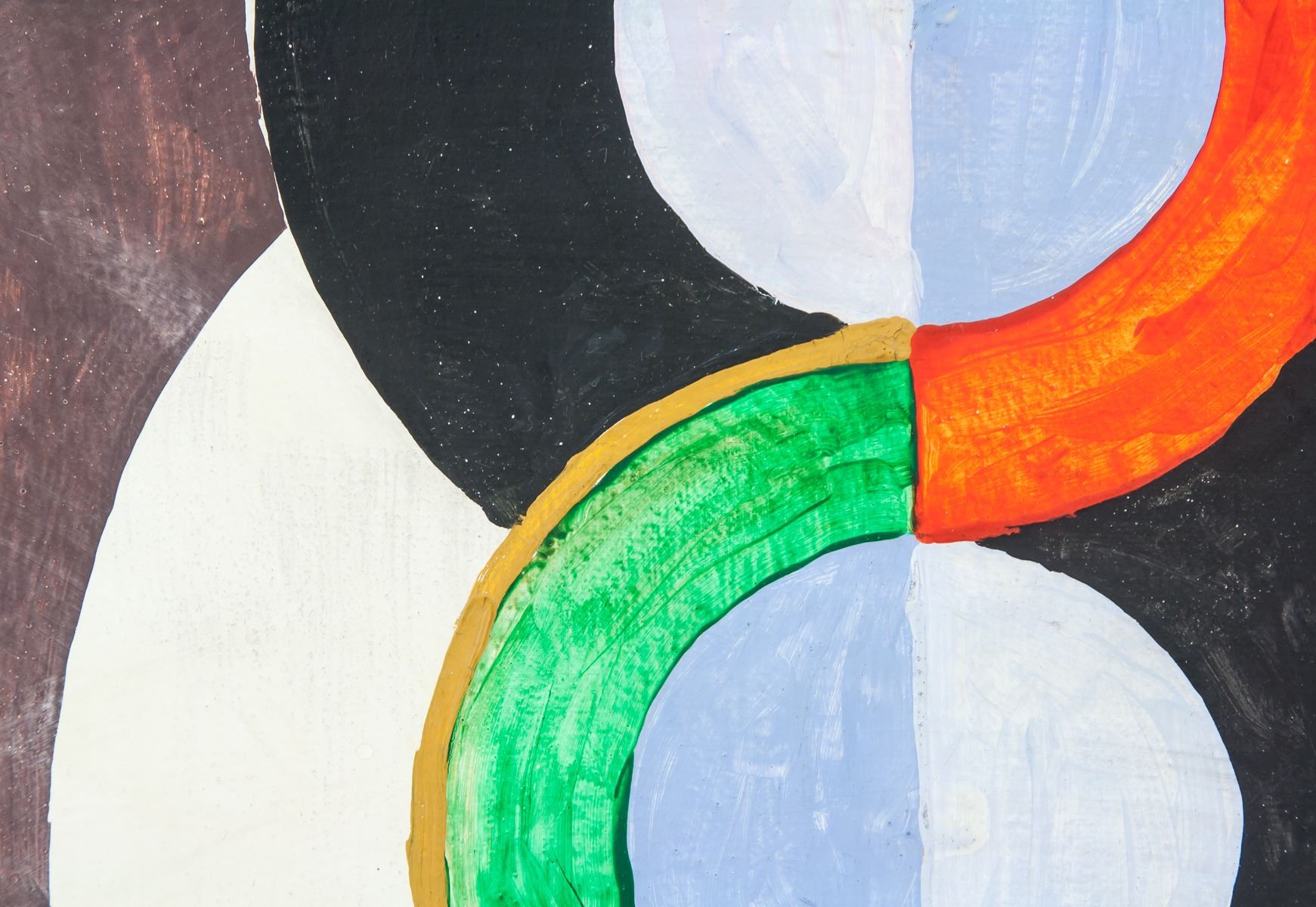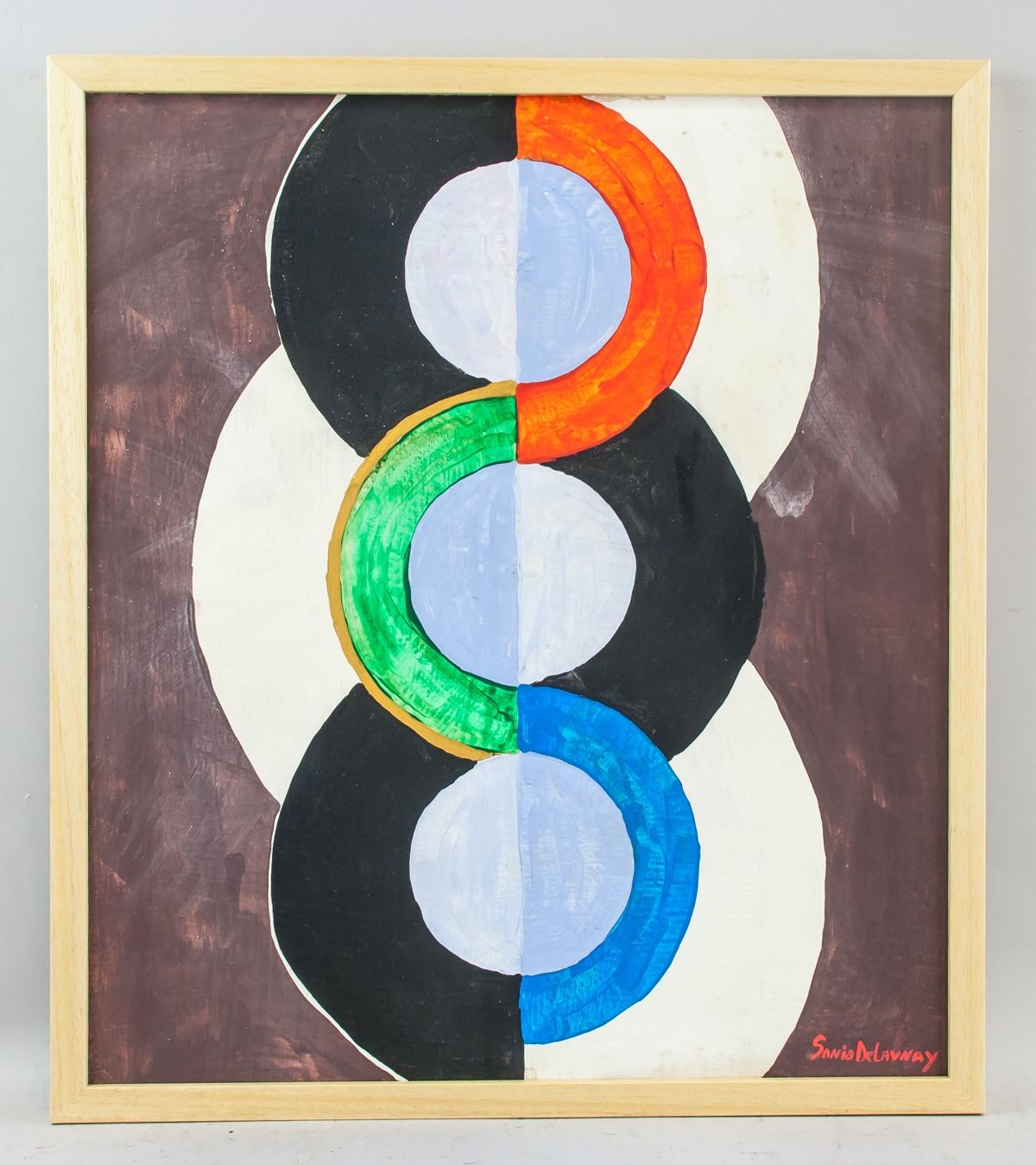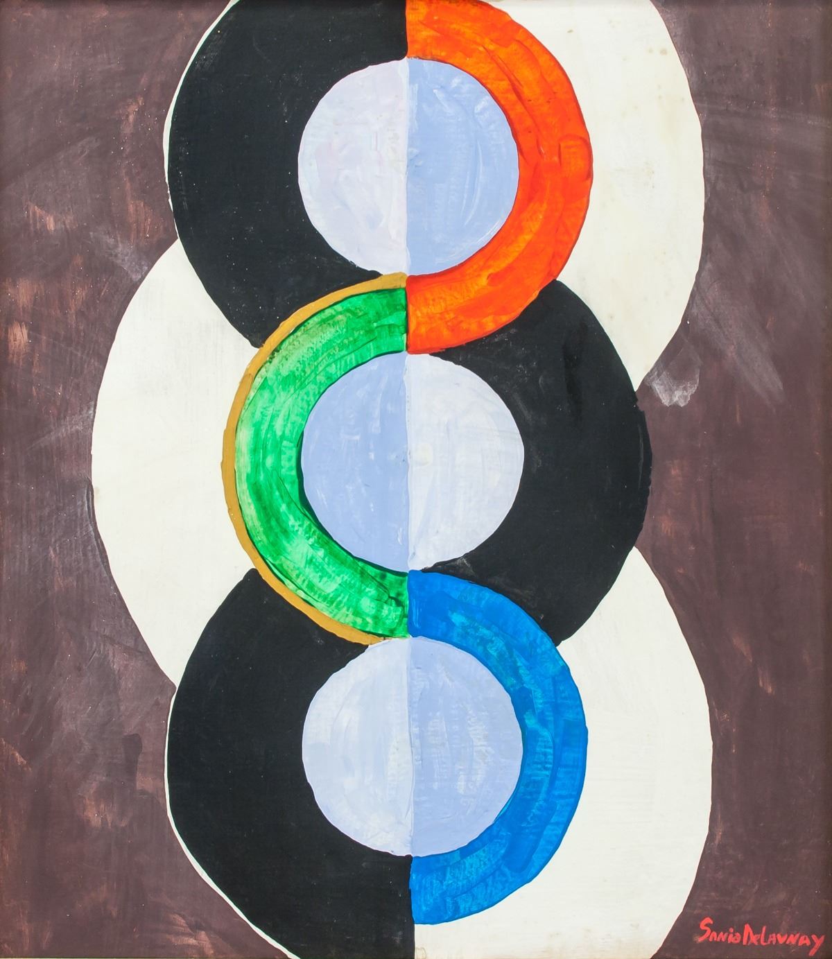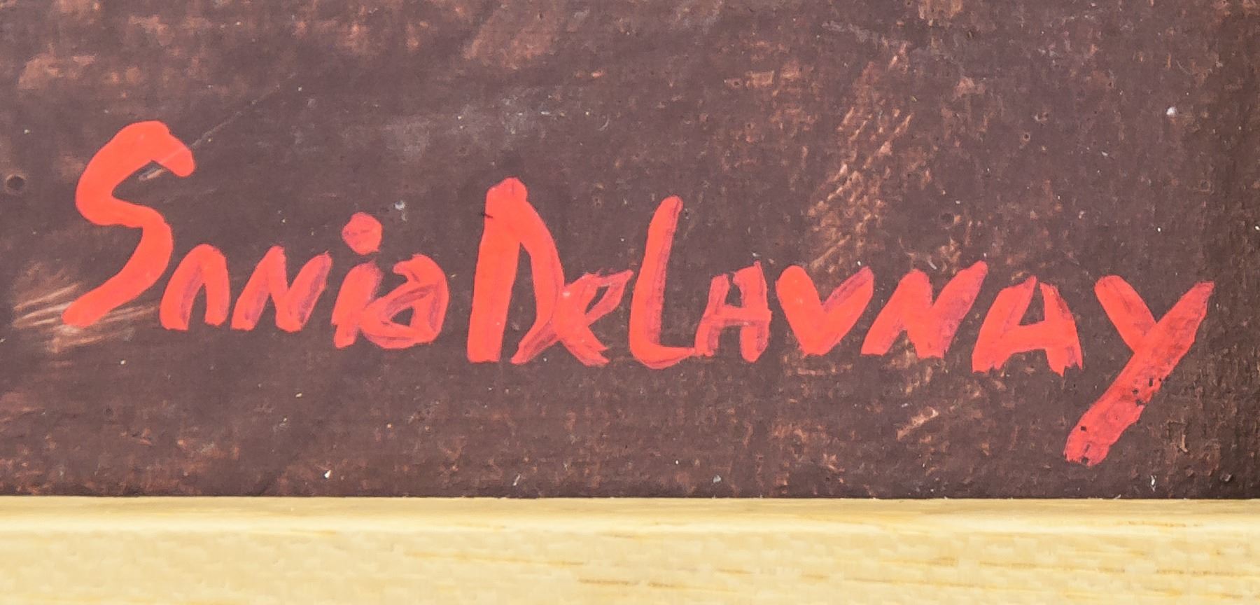 Oil on canvas, newly framed. Featuring an abstract expressionist composition of concentric circles. Signed and attributed to Sonia Delaunay (Ukrainian-French, 1885-1979) on the lower right corner. 140.5 x 46 cm (16 x 18.2 inches). Sonia Delaunay was a multi-disciplinary abstract artist and key figure in the Parisian avant-garde. Alongside her husband, Robert Delaunay, she pioneered the movement Simultanism. Her exploration of the interaction between colours has created a sense of depth and movement throughout her oeuvre. Sonia Delaunay spanned the full arc of the adventure of abstraction in Europe across the first half of the 20th century. One of the early pioneers, she helped to bring art and life together in the period between the First and Second World Wars and continued to champion the cause of abstraction as a universal visual language in the post-war era. As she wrote in her autobiography: We Will Go Right Up to the Sun (Nous irons jusq’au soleil) in 1978, one year before she passed away: ‘What had people been saying about me up to then? - muse of Orphism, decorator, Robert Delaunay’s partner. Then they conceded: "collaborator, continuer…" before admitting that the work existed in its own right." As well as a major retrospective at the Kunstmuseum Bielefeld in 1958, Delaunay was the first living female artist to have a retrospective exhibition at the Louvre in 1964. She has also had her work shown at Musee d’Art Moderne in Paris, Smithsonian Cooper-Hewitt, National Design Museum, Musee des Arts Decoratifs, Musee National d’Art Moderne and Tate Modern. PROVENANCE: Private European estate.