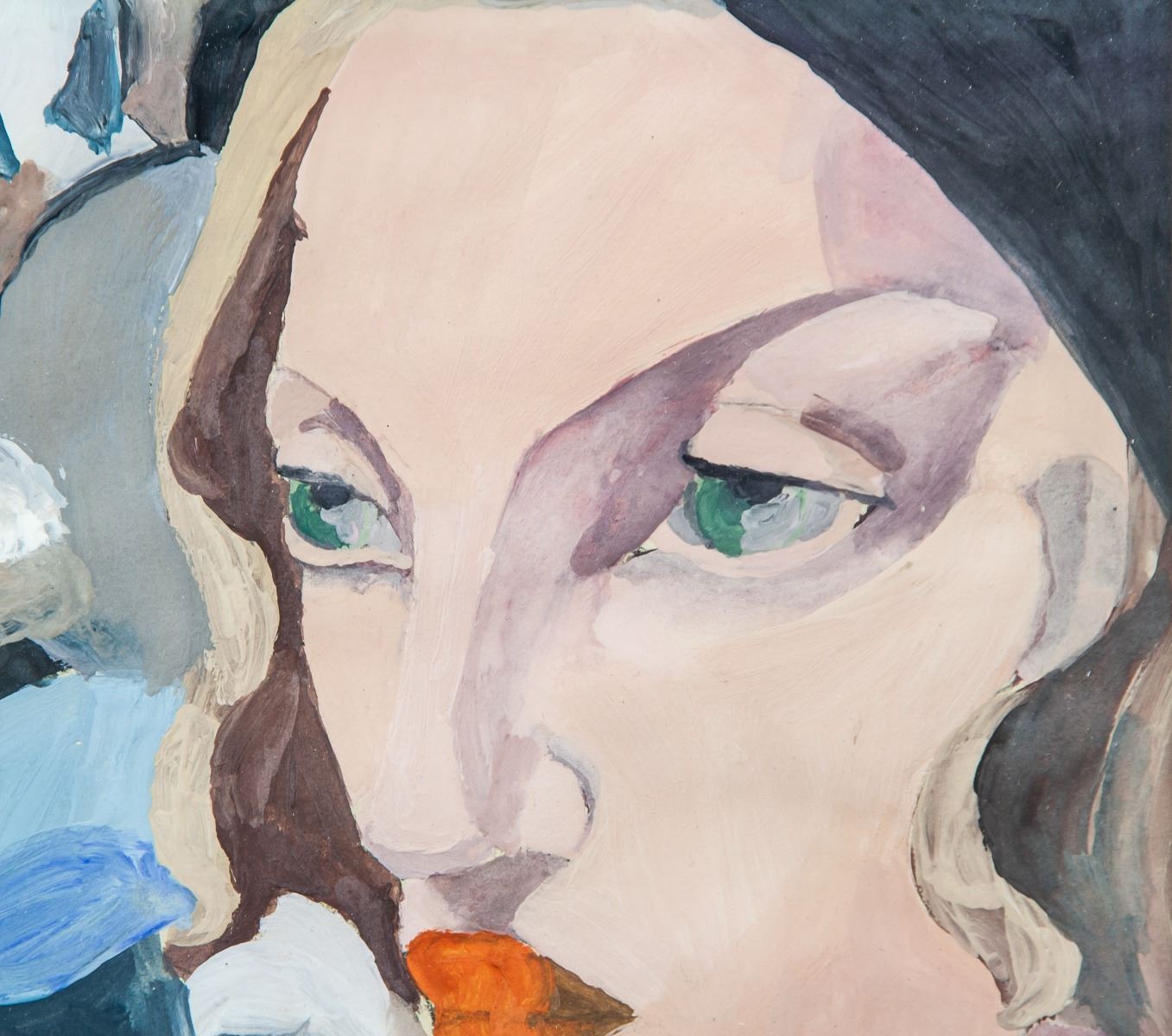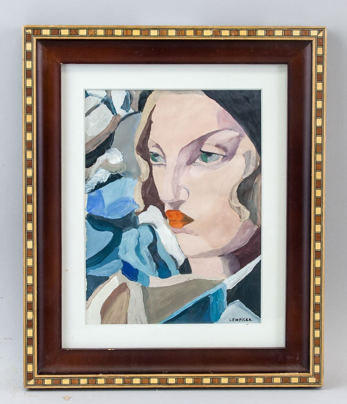 Oil on paper, newly framed. Featuring a portrait of a woman. Signed and attributed to Tamara de Lempicka (Polish, 1989-1980) on the lower right corner. 20 x 15 cm (7.9 x 5.9 inches). Frame size: 31 x 26 cm (12.2 x 10.2 inches) Tamara de Lempicka was a Polish painter known for her distinctive Cubism-influenced Art Deco style. In her many portraits of Hollywood stars and European aristocracy, her hallmark was the use of simplified tubular and angled forms as a means to render the figure and space, lending everything in her paintings the same tactile, metal-like quality. “My goal is never to copy,” the trailblazing artist declared, instead promising to “create a new style, clear luminous colors and feel the elegance of the models.” Born on May 16, 1898 in Warsaw, Poland (then part of the Russian Empire) to a wealthy family, she fled to Paris during the 1917 Russian Revolution. While living in the French capitol throughout the 1920s, she became an integral part of the bohemian scene and was acquainted with Pablo Picasso, Jean Cocteau, and Andre Gide. Today, her work is collected by many celebrities, including Madonna, Jack Nicholson, and Barbara Streisand. Lempicka died on March 18, 1980 in Cuernavaca, Mexico. PROVENANCE: Southern Ontario estate.
