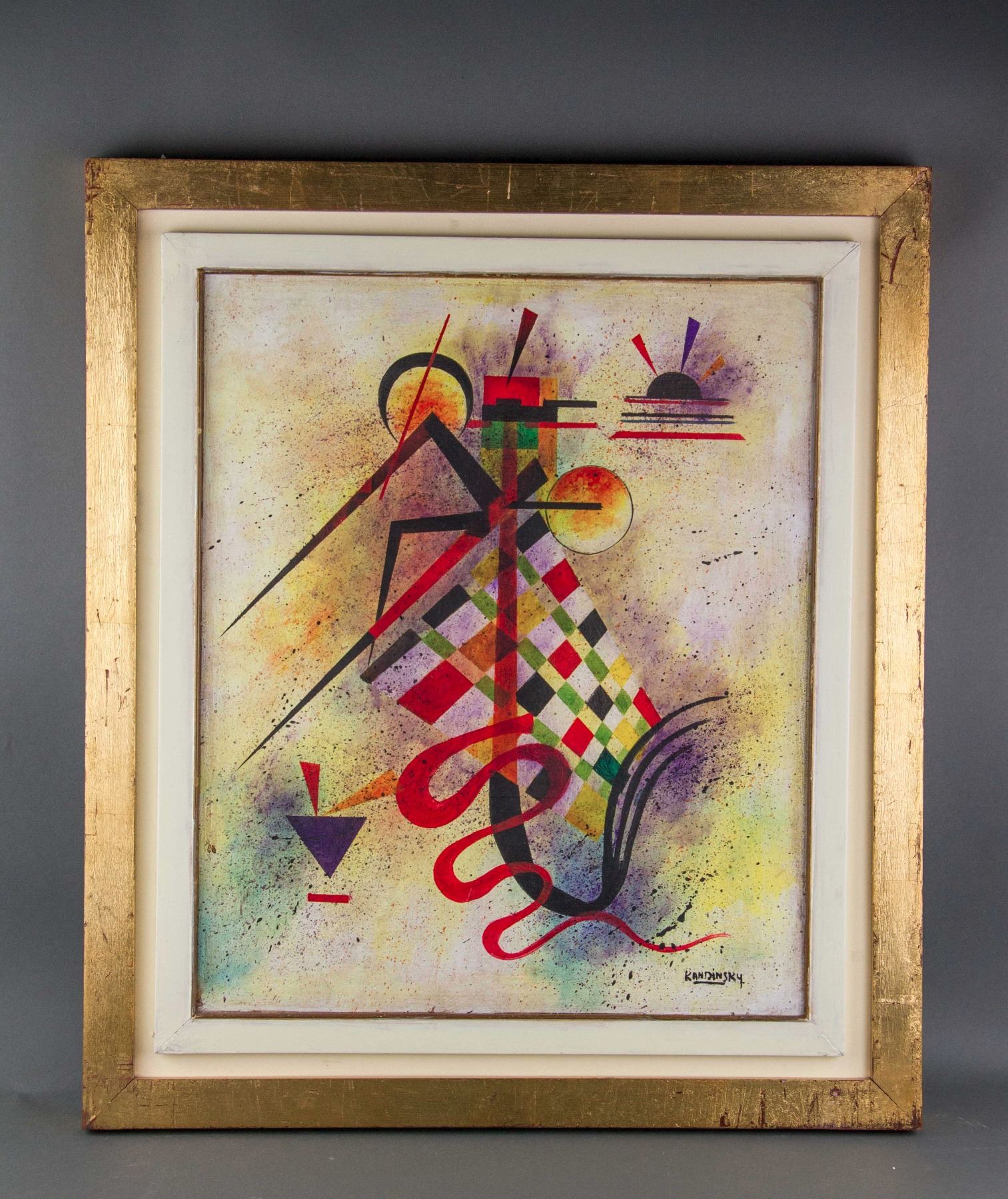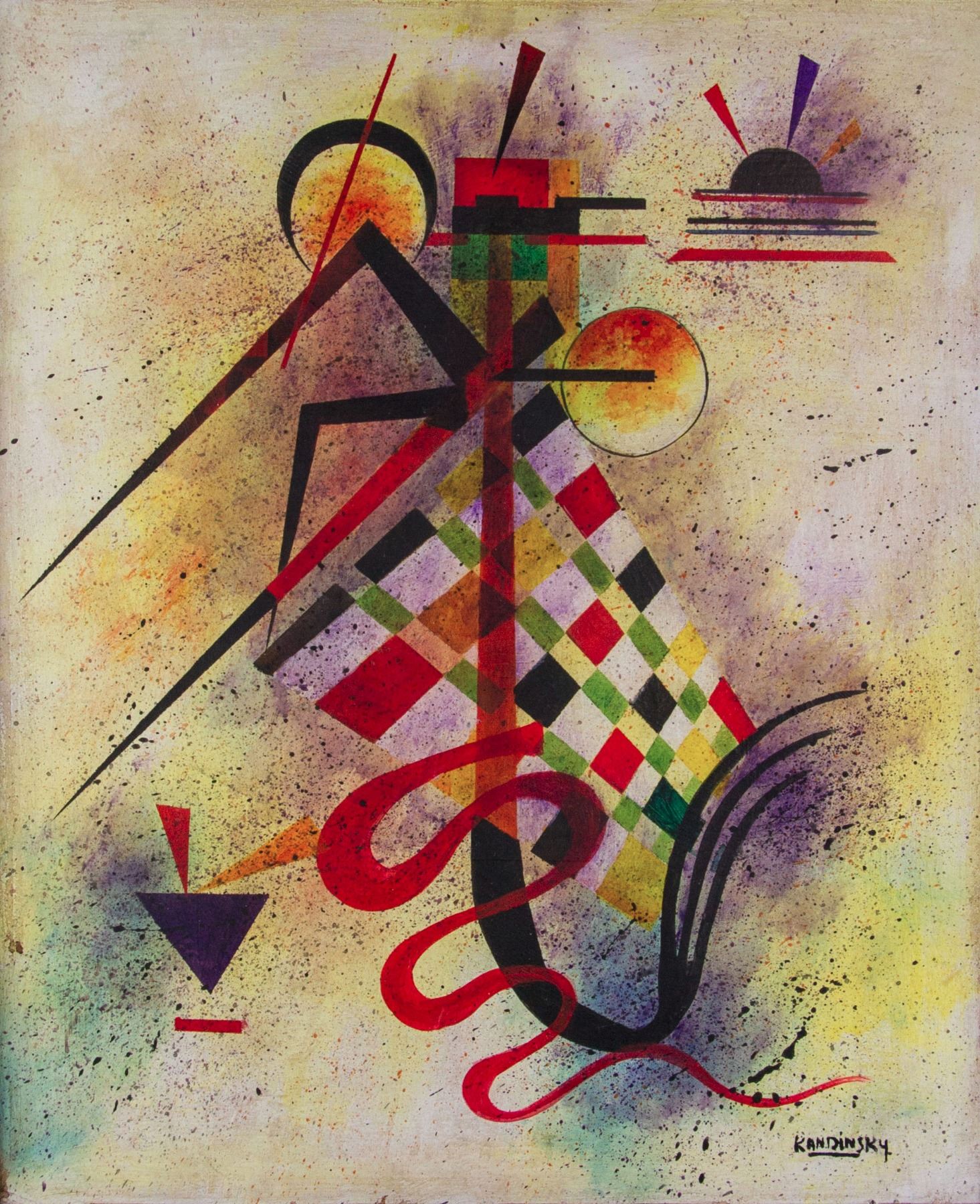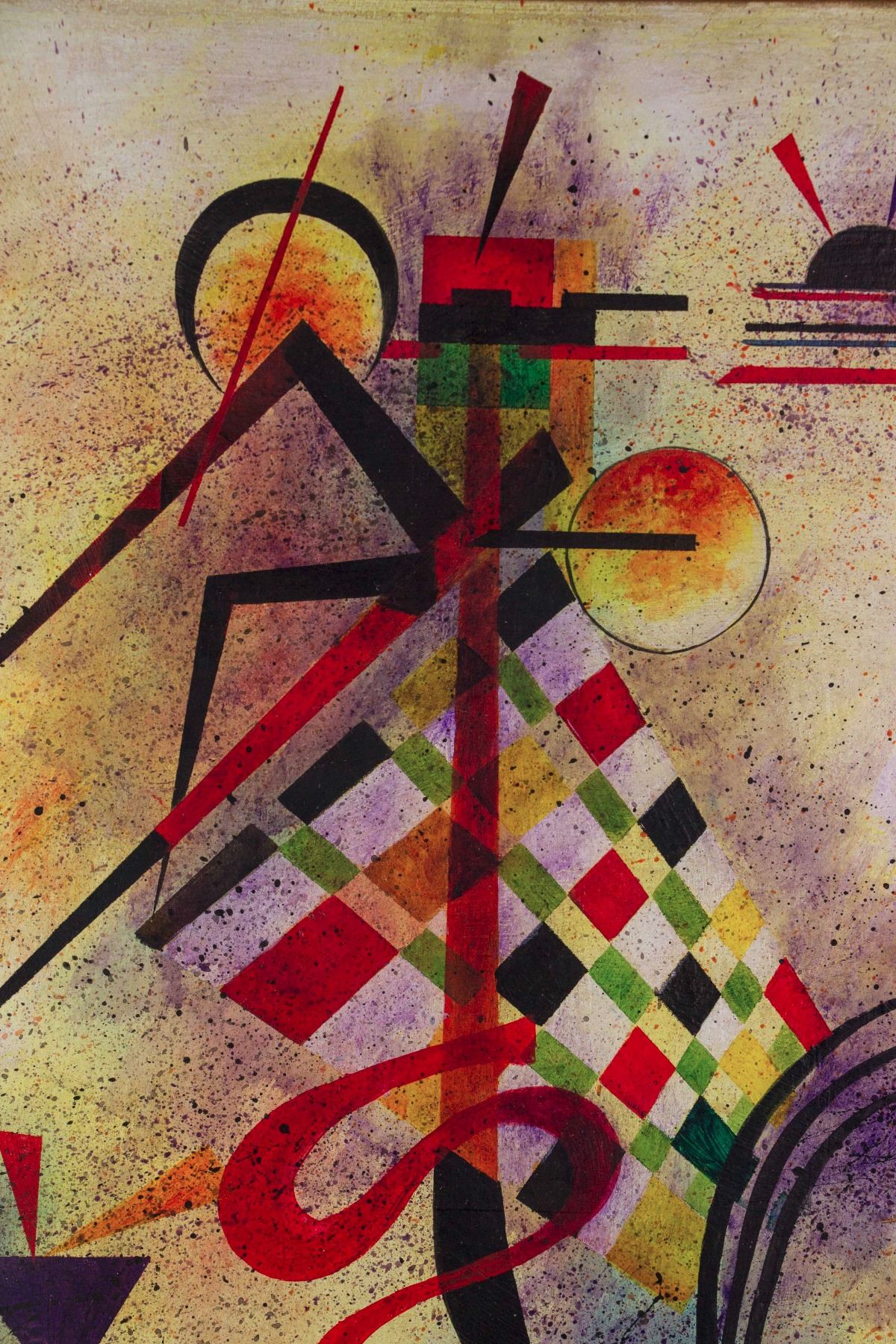 Abstract painting; combined with many geometric patterns; gouache on board; signed left lower corner attributed to Wassily Kandinsky (1866-1944), Russian artist; 59 inch x 49 inch