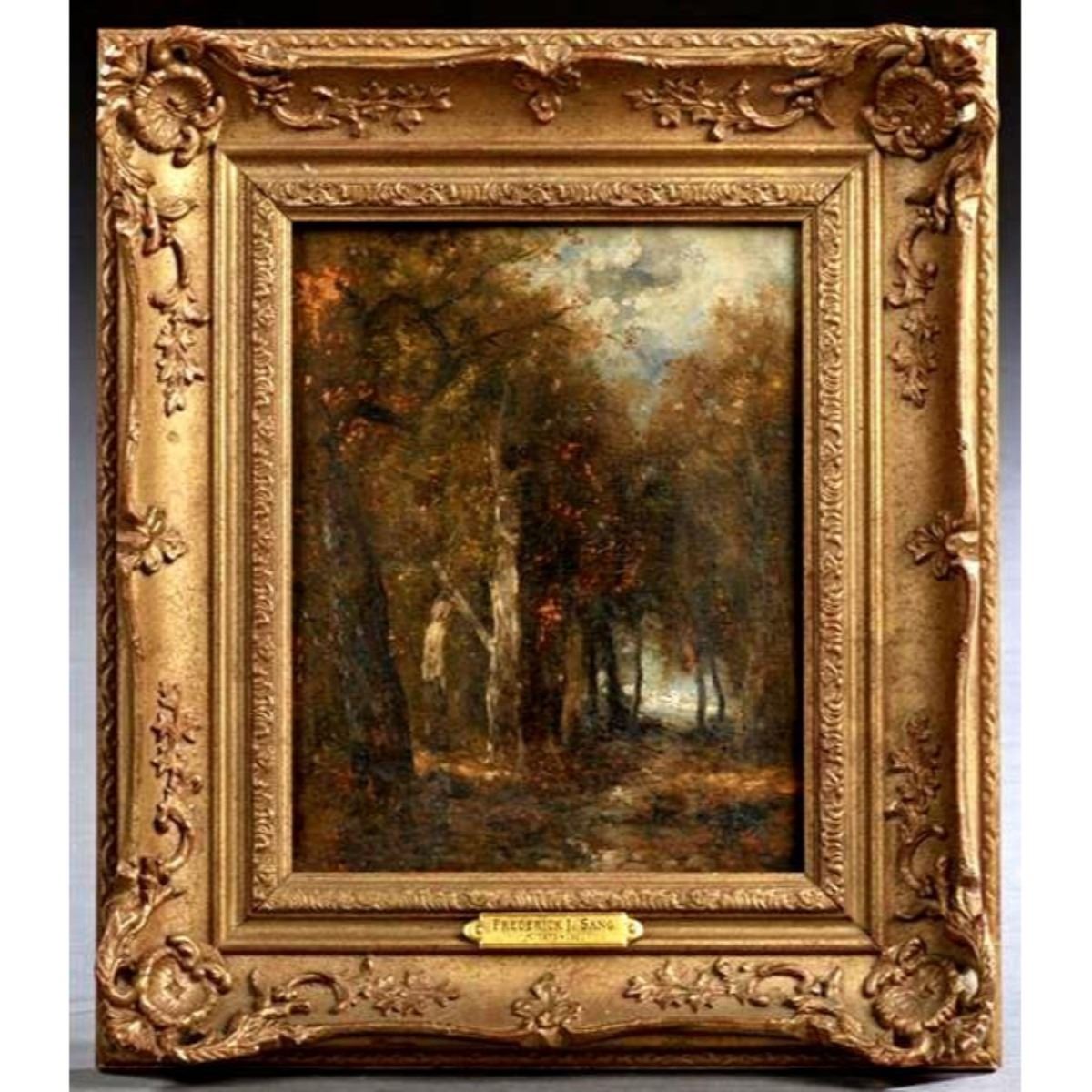 Description: Attr. to Frederic Jacques Sang (1846-1931), "La Foret," 20th c., oil on panel, presented in a gilt and gesso frame, H.- 9 1/8 in., W.- 7 1/8 in. Provenance: Private Collection of a local Antiquarian, New Orleans, Louisiana. - 10598-051918-IN-00266