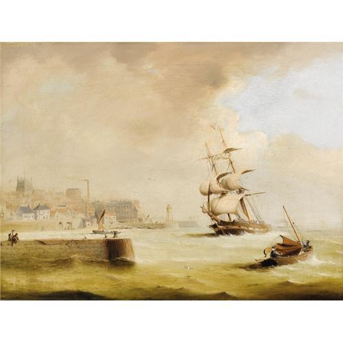 <B>Attributed to GEORGE CHAMBERS, JR.</B></I> (British active 1848-1862)<BR><I>A View Of London</B></I><BR>Oil on canvas<BR>18 x 24 inches (45.7 x 60.9 cm)<BR>Signed lower left: <I>Chambers</B></I><BR><BR>Provenance:<BR>Private collection (North Yorkshire, England);<BR>Private collection (Houston, Texas) <B>Condition Report:</B> Normal signs of wear as appropriate with age, relined and with some strengthening<BR><BR><b>Shipping:</b> Requires 3rd Party Shipping (<a target="_blank" href="http://www.heritageauctions.com/common/shipping.php">view shipping information</a>)
