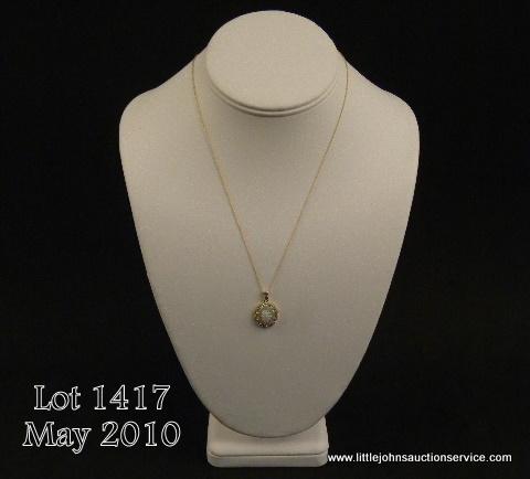 Attractive 10 karat yellow gold ladies pendant set  with 10 nice color opals and surrounded by 30  round white topazes. Retail $950.00 Estimate  $300-$400 A nice item