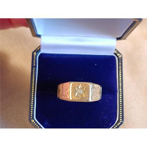 Attractive Circa 1900 18kt yellow gold and diamond band ring gypsy set small Old European Cut Diamond in star cut out pattern with floral engraved sides! English hallmarks. Great antique ring!