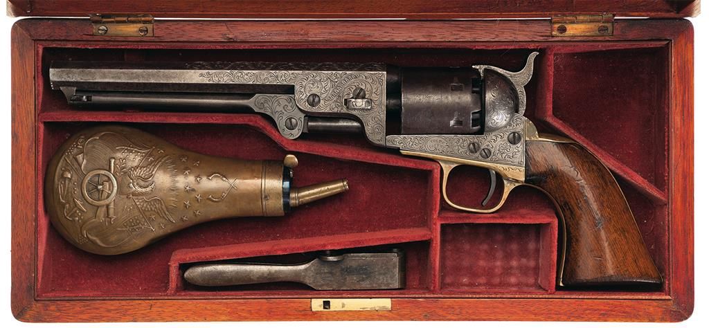 Attractive Cased Engraved Colt Model 1851 Percussion Navy Revolver with Accessories