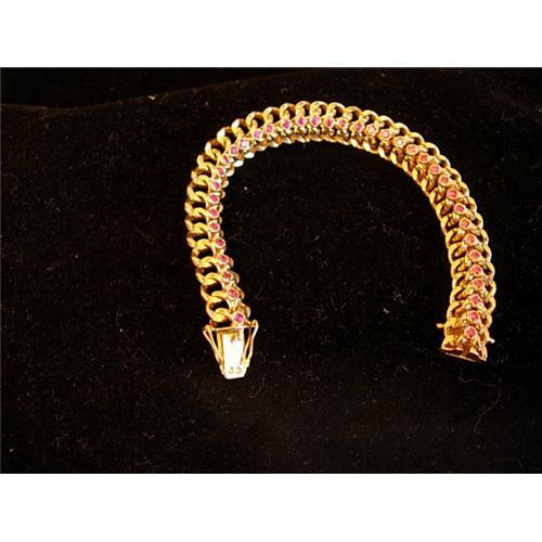 <tr><td>Title:Attractive Circa 1940s Ruby 18Kt YG Flexible</td></tr>