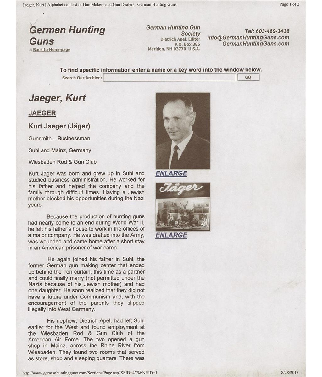 Very fine as custom embellished with 99% of the high quality blue finish. The stock and forend are both exceptional with no handling marks with beautiful carving and very fine checkered factory panels on the sides of the pistol grip area and forend. Truly an exceptional example of superb and meticulous Germanic Engraving by one the top German engravers.