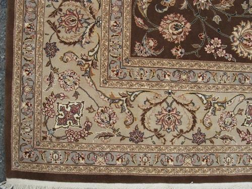 Very Unique and Attractive Fine Part Silk Persian-Pak Isfahan Rug. 100%Natural, vegetable dye, hand woven, pure silk baby and finest baby lamb's wool pile on cotton foundation. This is an unbelievably lustrous fine Isfahan design rug with a gorgeous arabesque pattern and an understated central medallion. The silk highlights give this piece a three dimensional and a glowing character. This fabulous piece has the most dazzling array of color palette. where rugs typically employ between twelve and sixteen colors, this lovely piece incorporates more than thirty two different colors. This lovely piece is masterfully hand woven, knot by knot, using finest baby lamb's wool and has about 160 knots per square inch and it would take over four years to weave this beauty. Size: 11 feet 6 inches X 8 feet 6 inches. Country of origin: Pakistan. Question: Why purchase handmade rugs instead of machine-made rugs? Answer: Handmade rugs offer excellent long-time durability, usually with tight density. they do not fade and do not deteriorate as time goes by like machine-made carpets. They are environmental friendly, and on the health side, allergies are less common with handmade rugs. handmade rugs are easy to clean and they stay clean longer. Handmade rugs are classic with fashion, fit for any style of home decoration, and they make your room much more elegant. They offer a large combination of colorful designs, and they give an artistic value for collection. Handmade carpets appreciate in value year by year, making them a good choice for investment. Size: 11 feet 6 inches X 8 feet 6 inches. Country of origin: Pakistan.