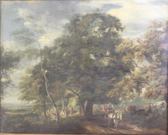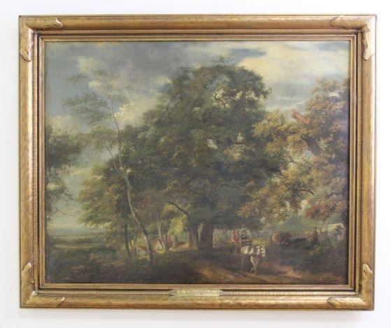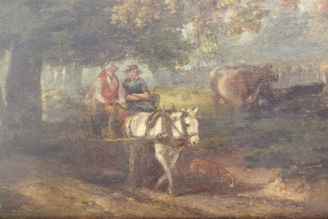 Rural landscape with figures. 24" x 30" unframed, 29" x 35" framed Restored