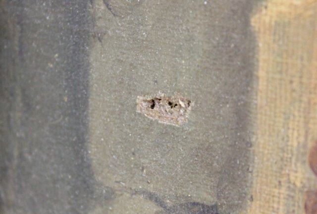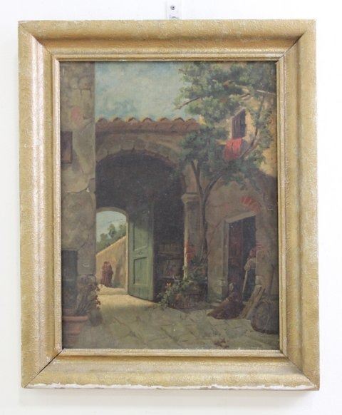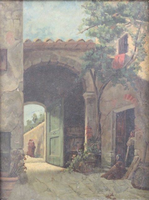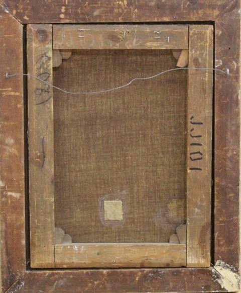 Oil on canvas. Pencil signed on stretcher. Eugenio Cecconi (1842-1903). Approx. 19" x 14" unframed, 23" x 19" framed Damages. Restorations. Relined. Wear to frame.